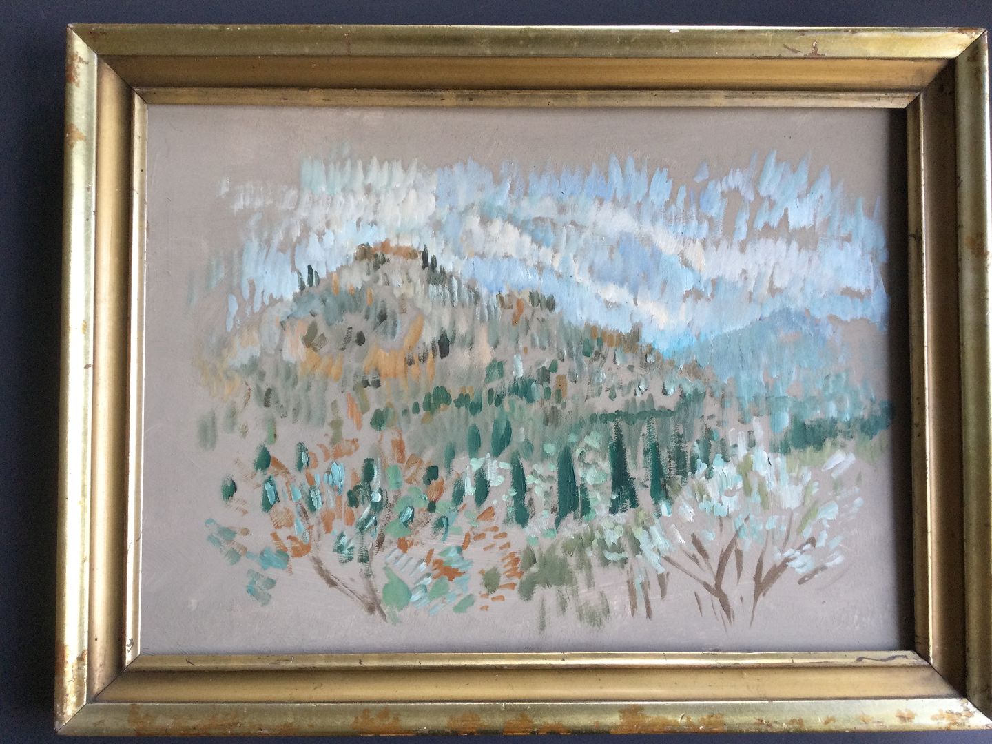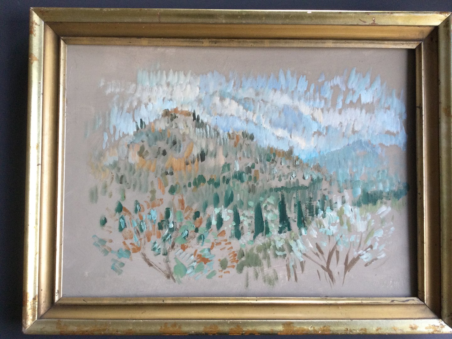 Maleri i smuk antik ramme - Sydlandsk landskab.