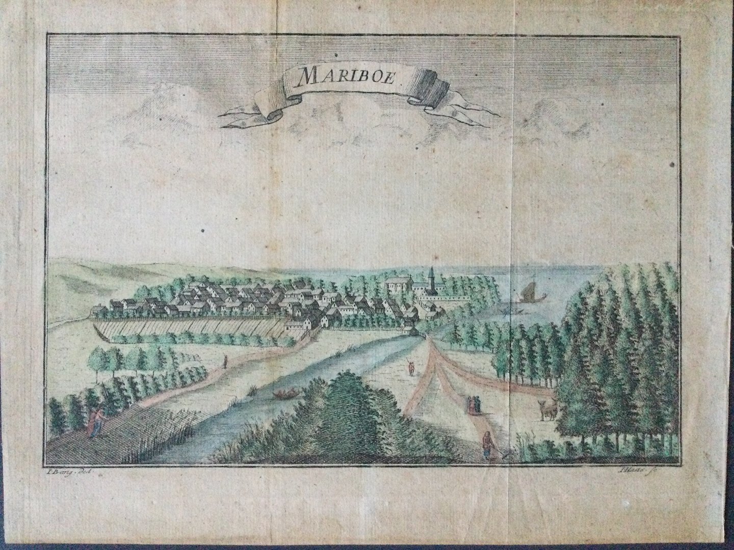 Koloreret kobberstik af Erik Pontoppidan og Jonas Haas - Maribo 1767 - fra Danske Atlas.