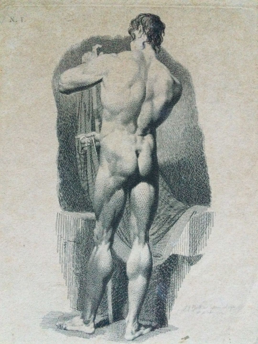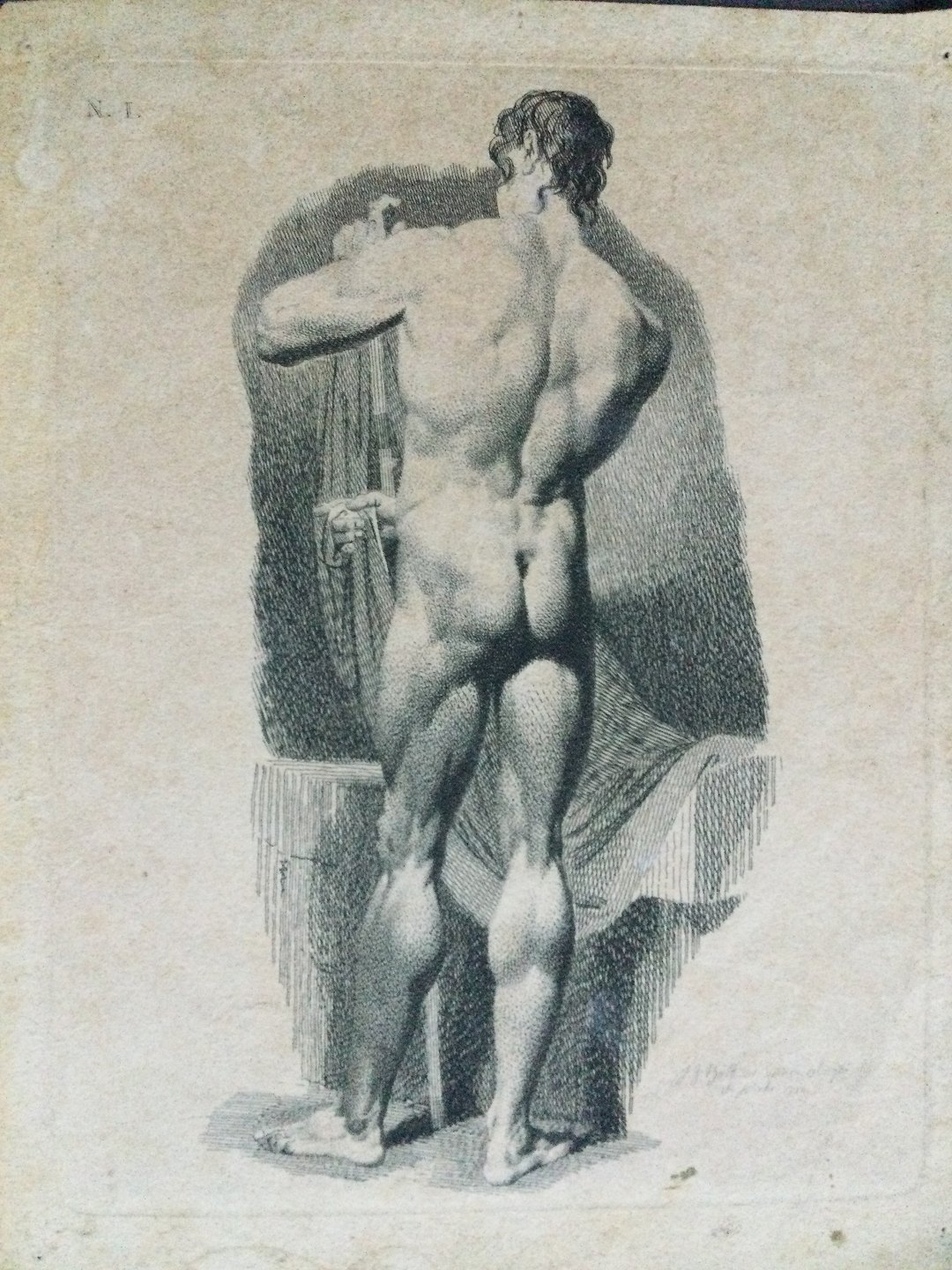 Kobberstik af Johann Friedrich Bolt - Nøgen mand set bagfra 1792.