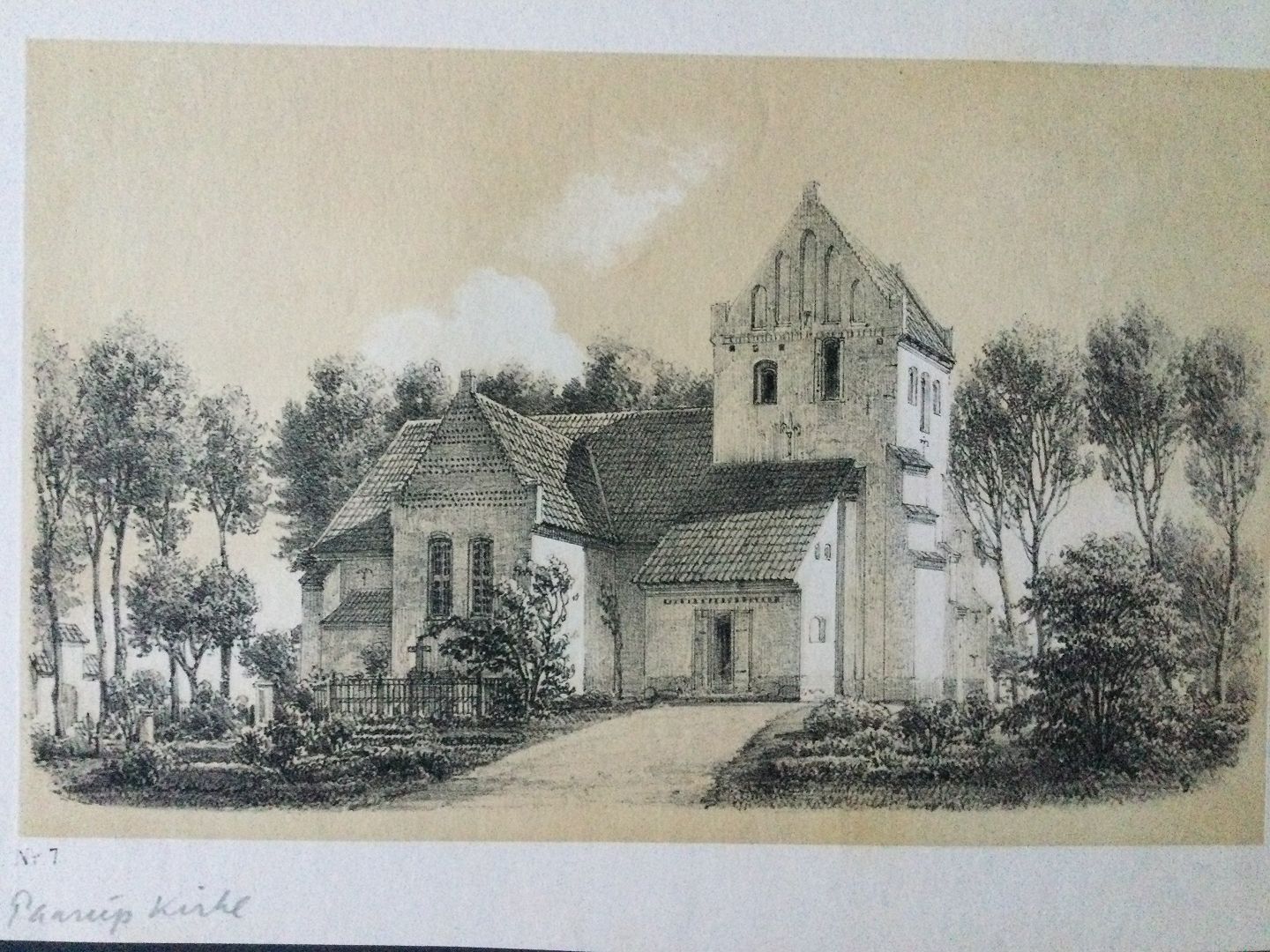 Litografi af Paarup Kirke på Fyn 1867.