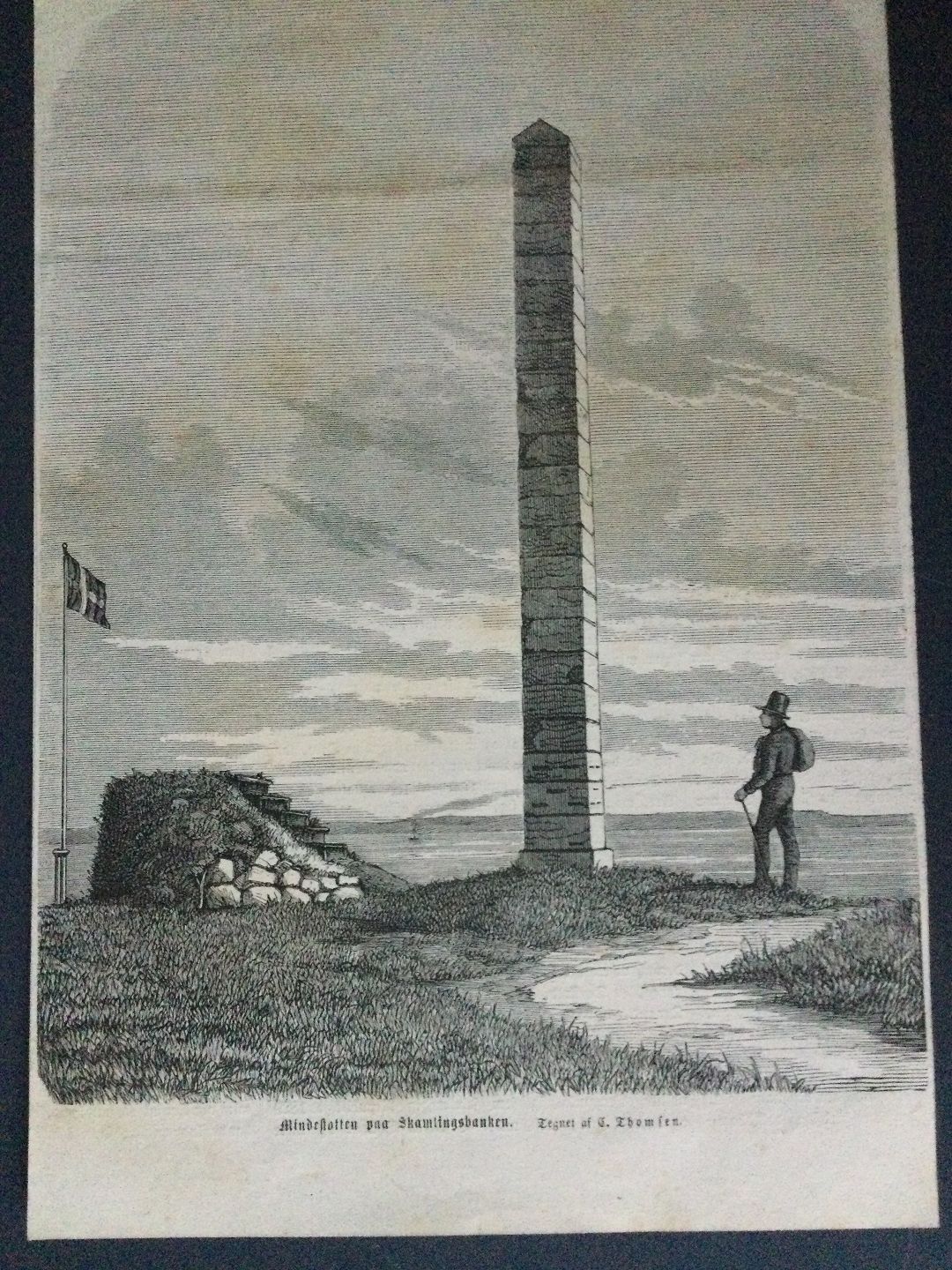 Xylografi af Carl Thomsen - Mindestøtten på Skamlingsbanken 1868.