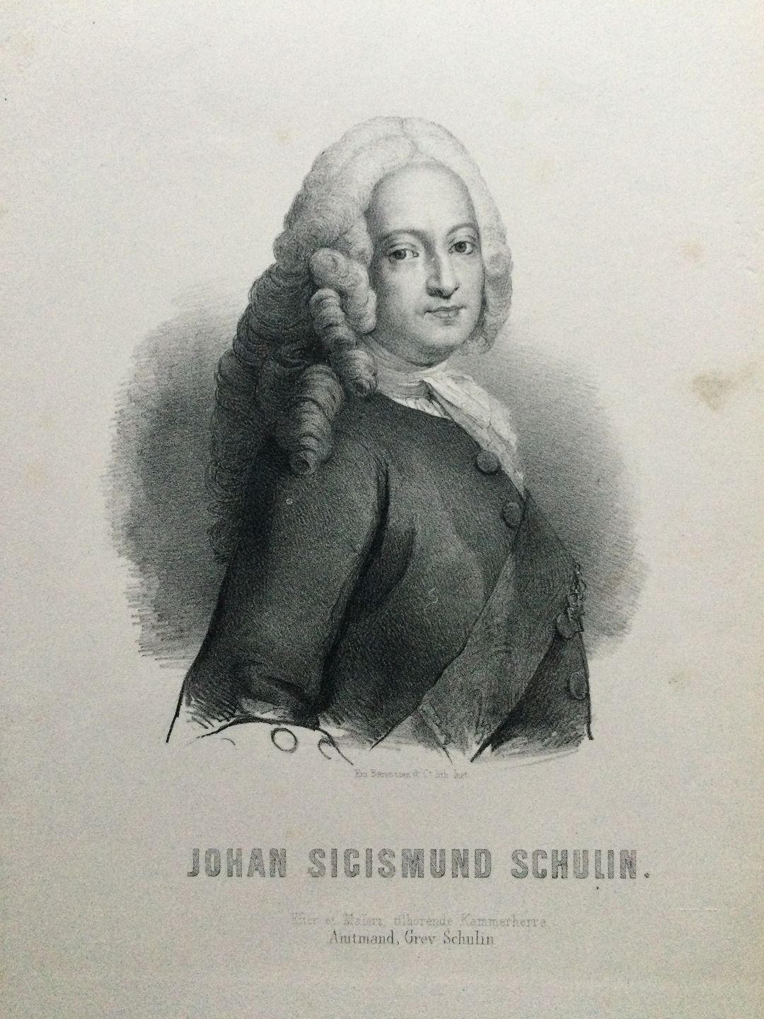 Litografi af Em. Bærentzen - Portræt af Udenrigsminister, Lensgreve Johan Sigismund Schulin 1868.