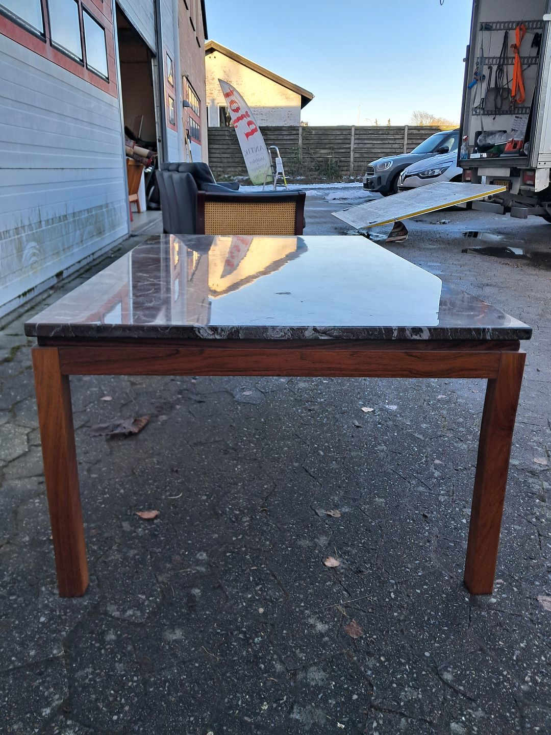 Sofabord i palisander med marmorplade, fra 1970erne.