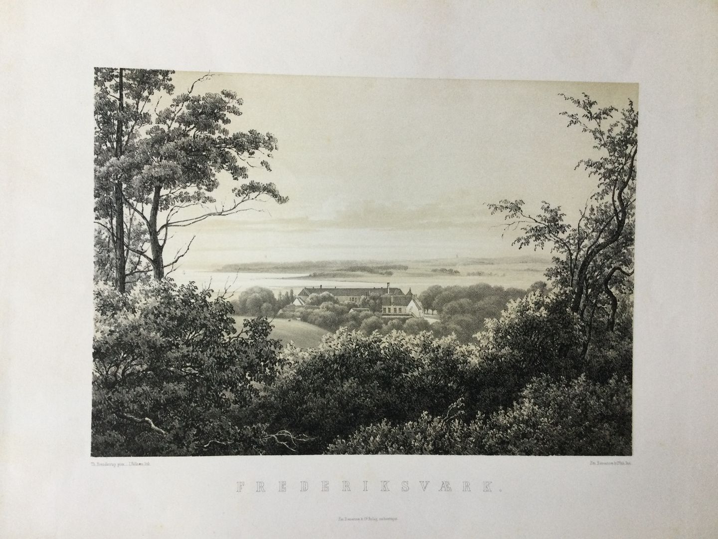 Litografi af Julius Hellesen - Parti fra Frederiksværk 1856.