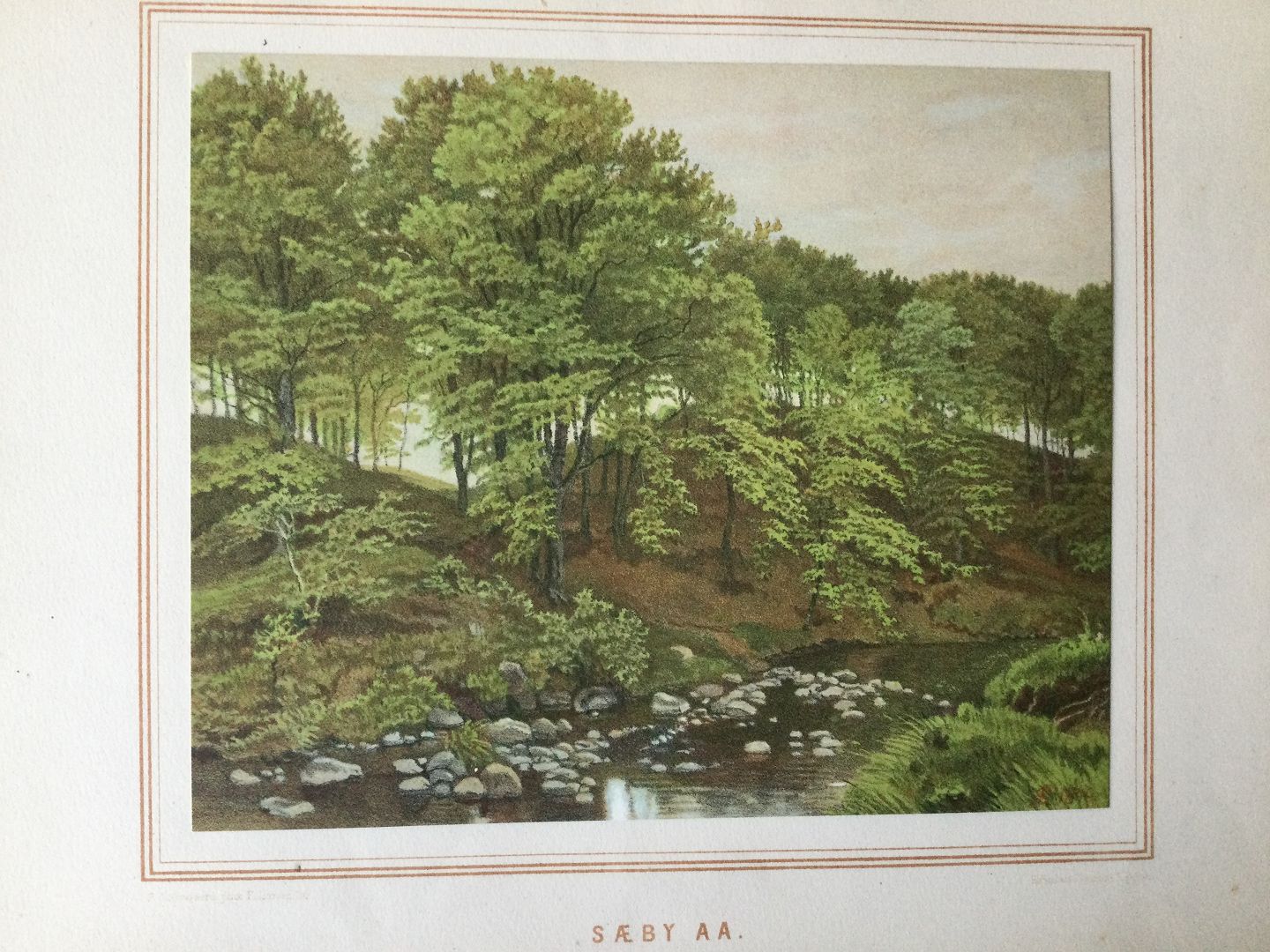 Farvelitografi af Ferdinand Larsen - parti fra Sæby å.