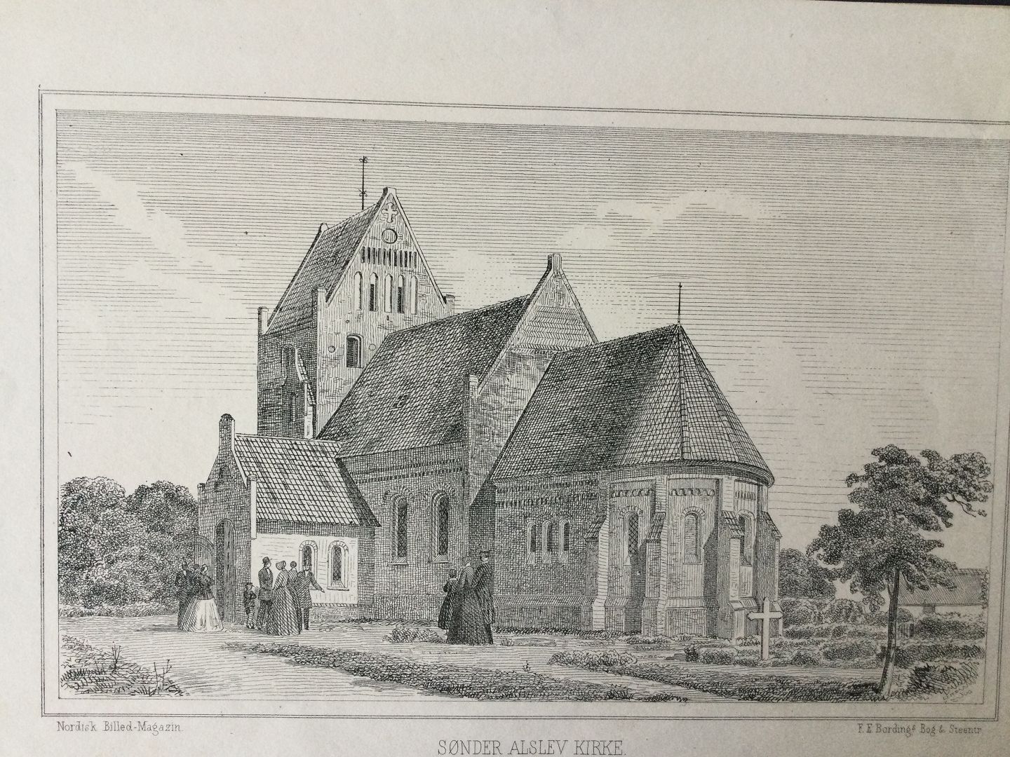 Radering af F.E. Bording - Sønder Alslev Kirke på Falster ca 1865.