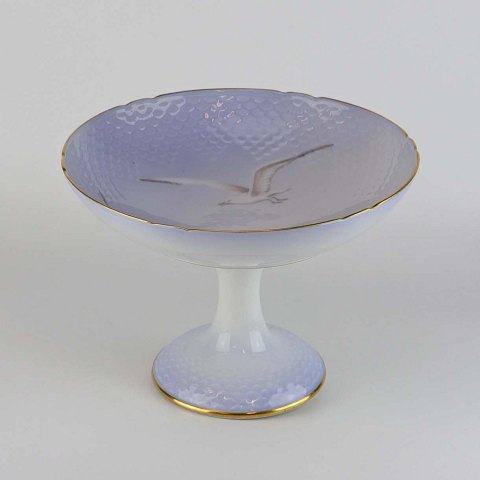 Kagefad på fod i porcelæn fra stellet Mågestel med guldkant