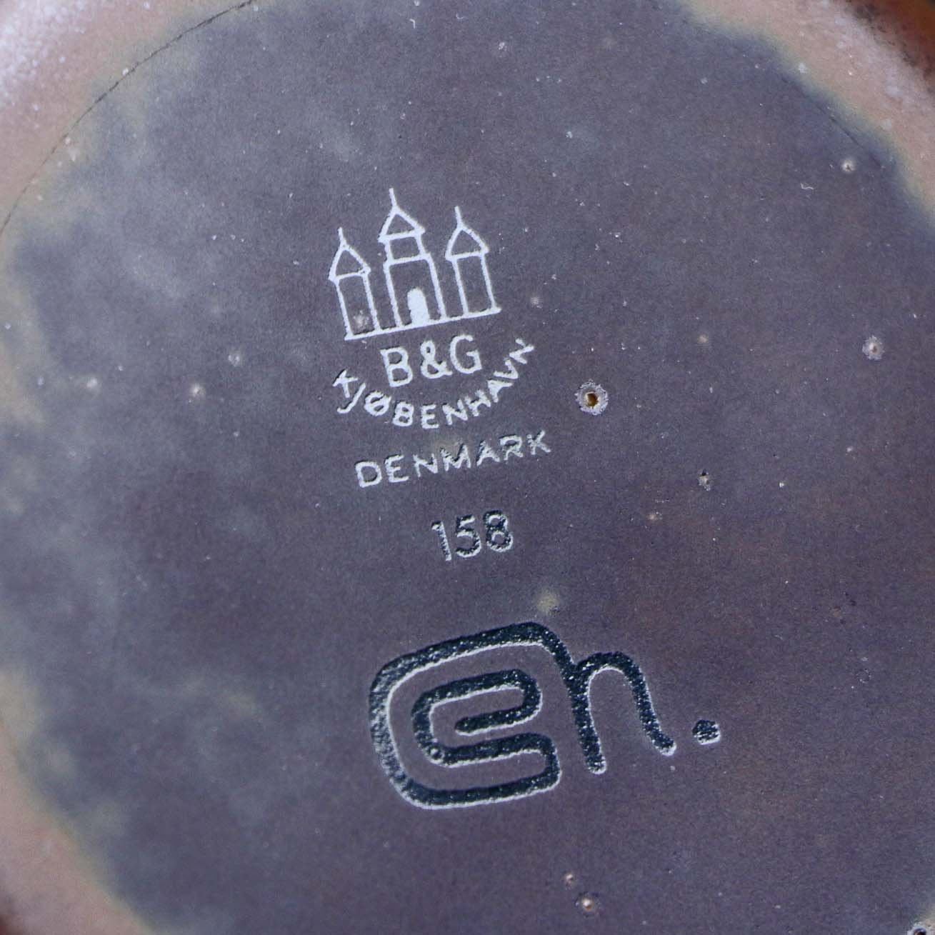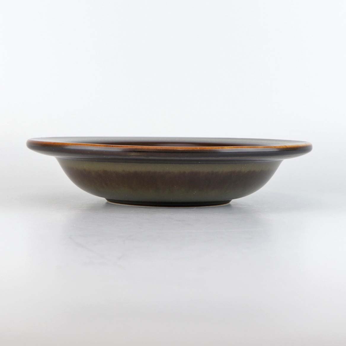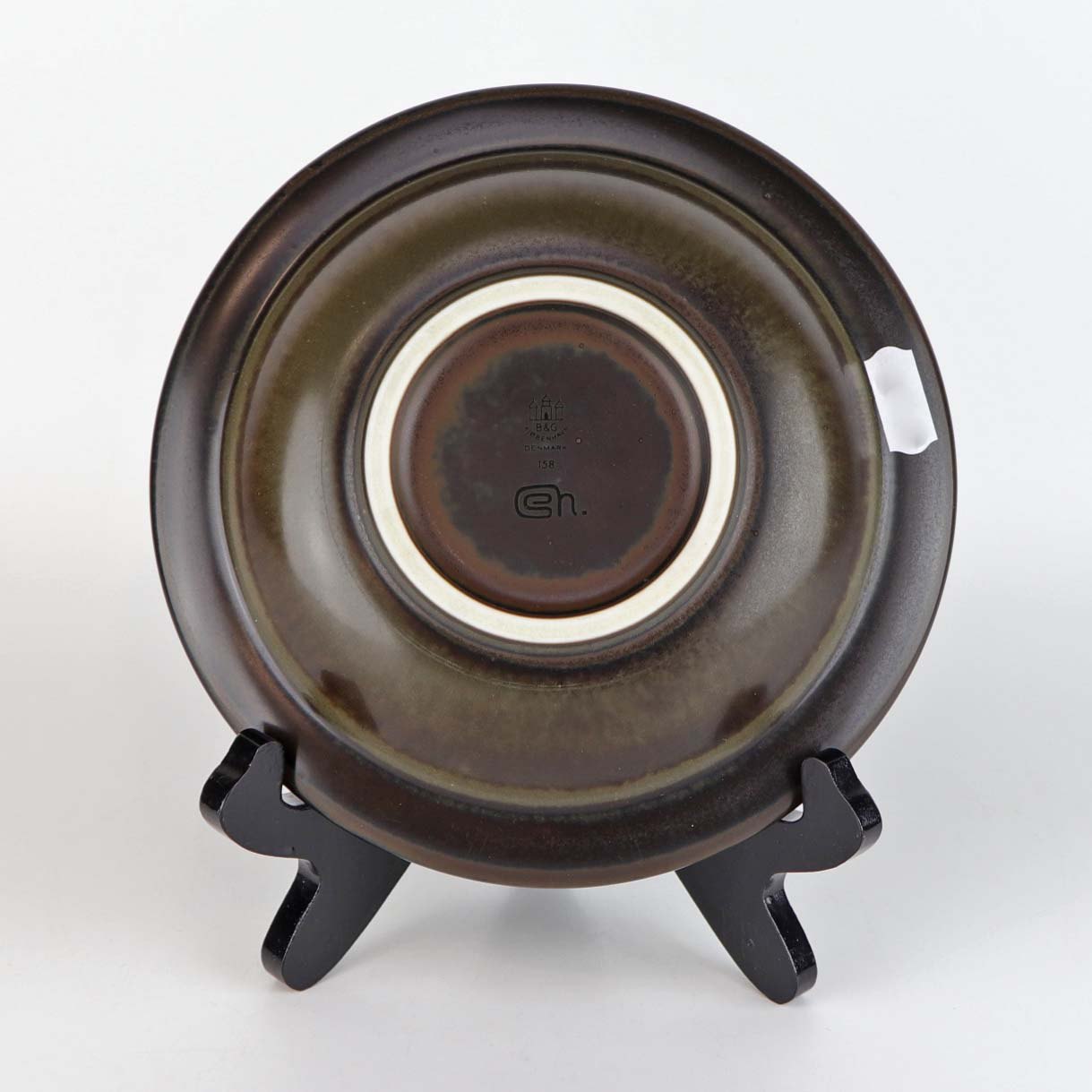 Skål i brunt stentøj med motiv af liggende hjort. Nr. 158