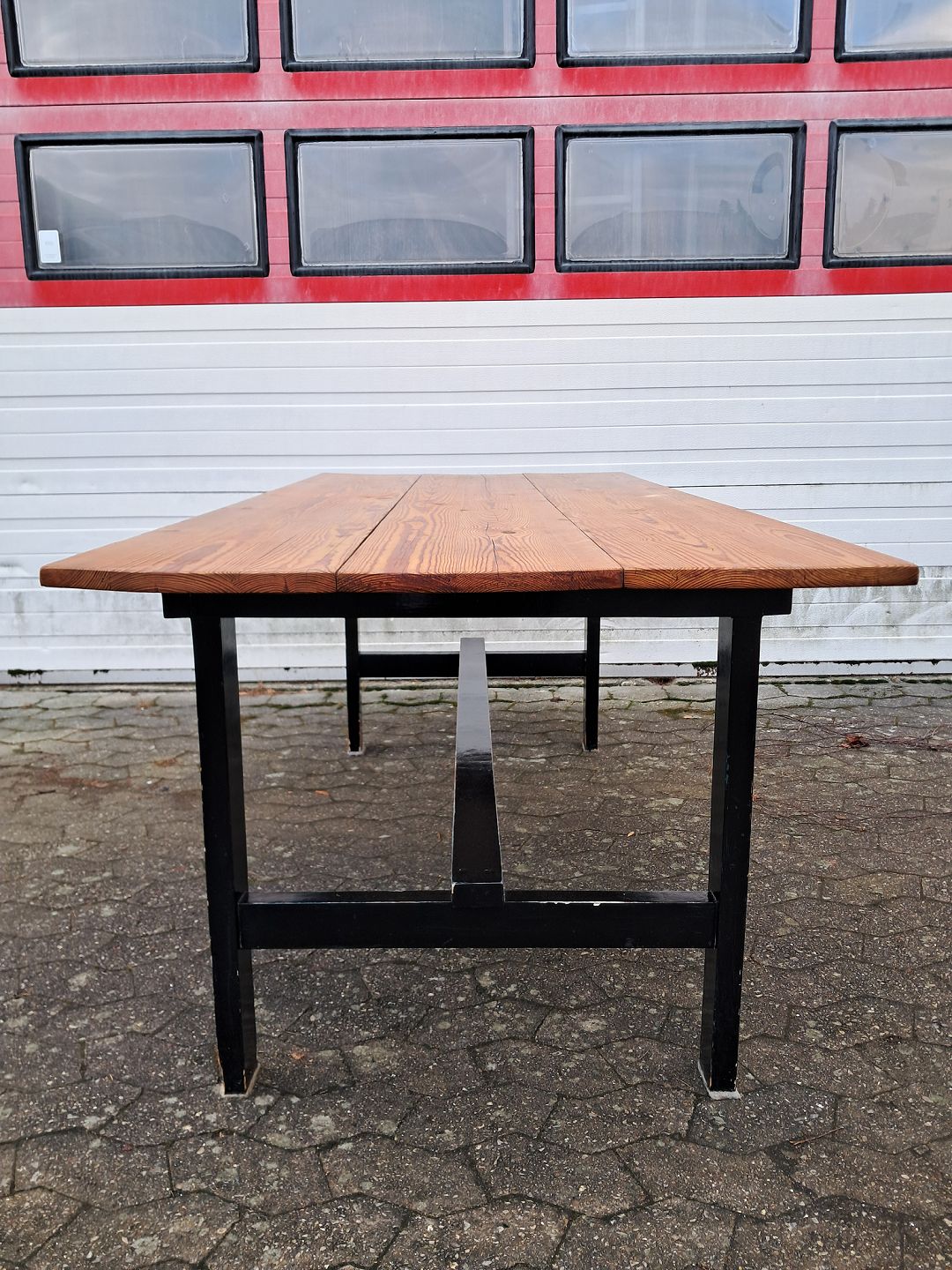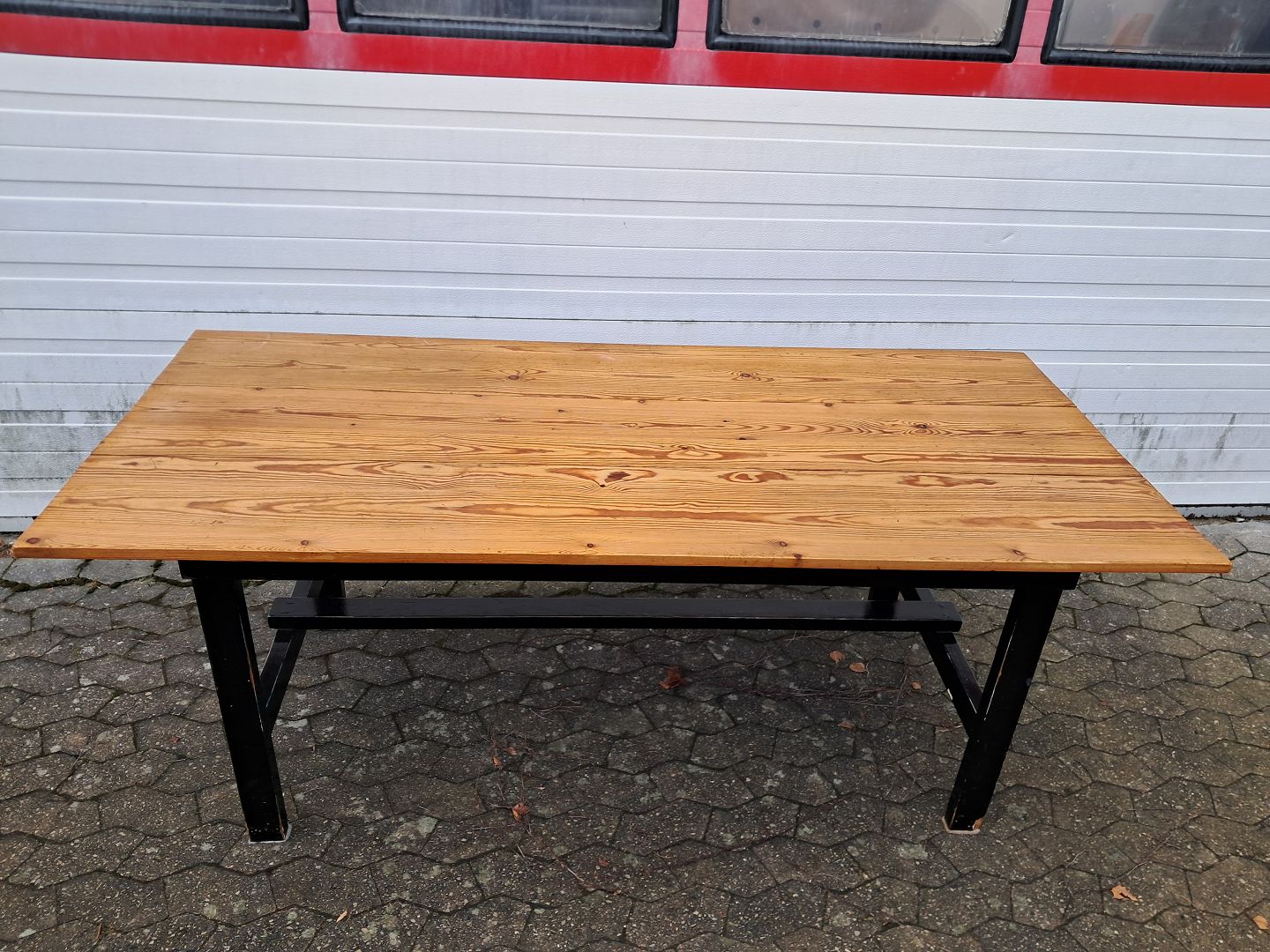 Bord i massivt fyrretræ med malet understel, fra 1980erne.