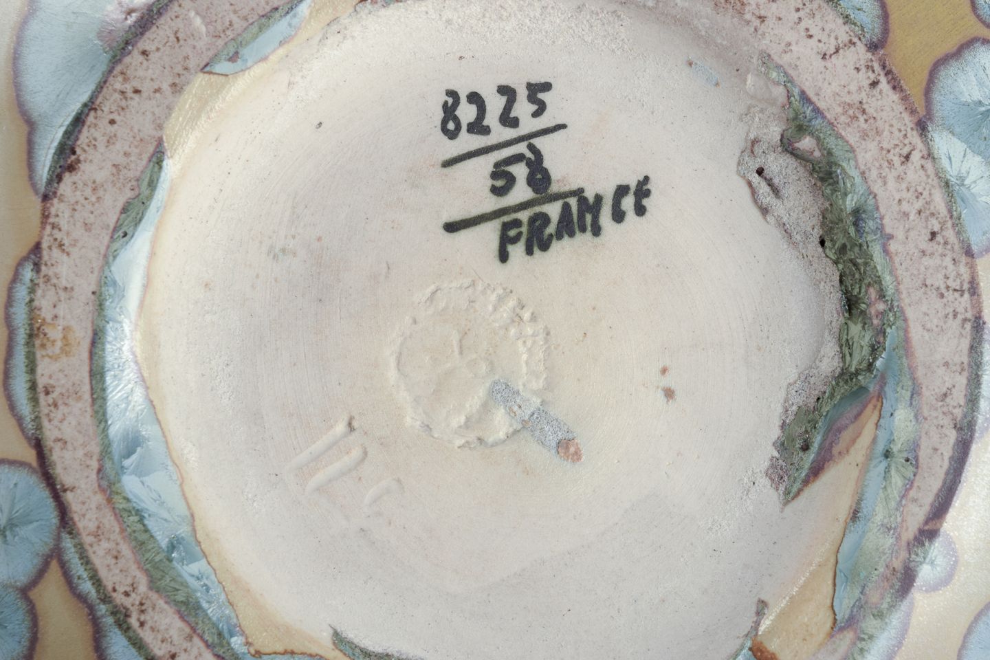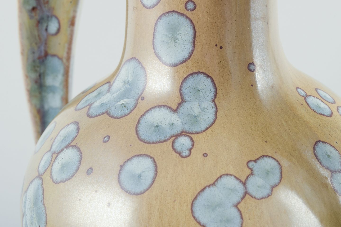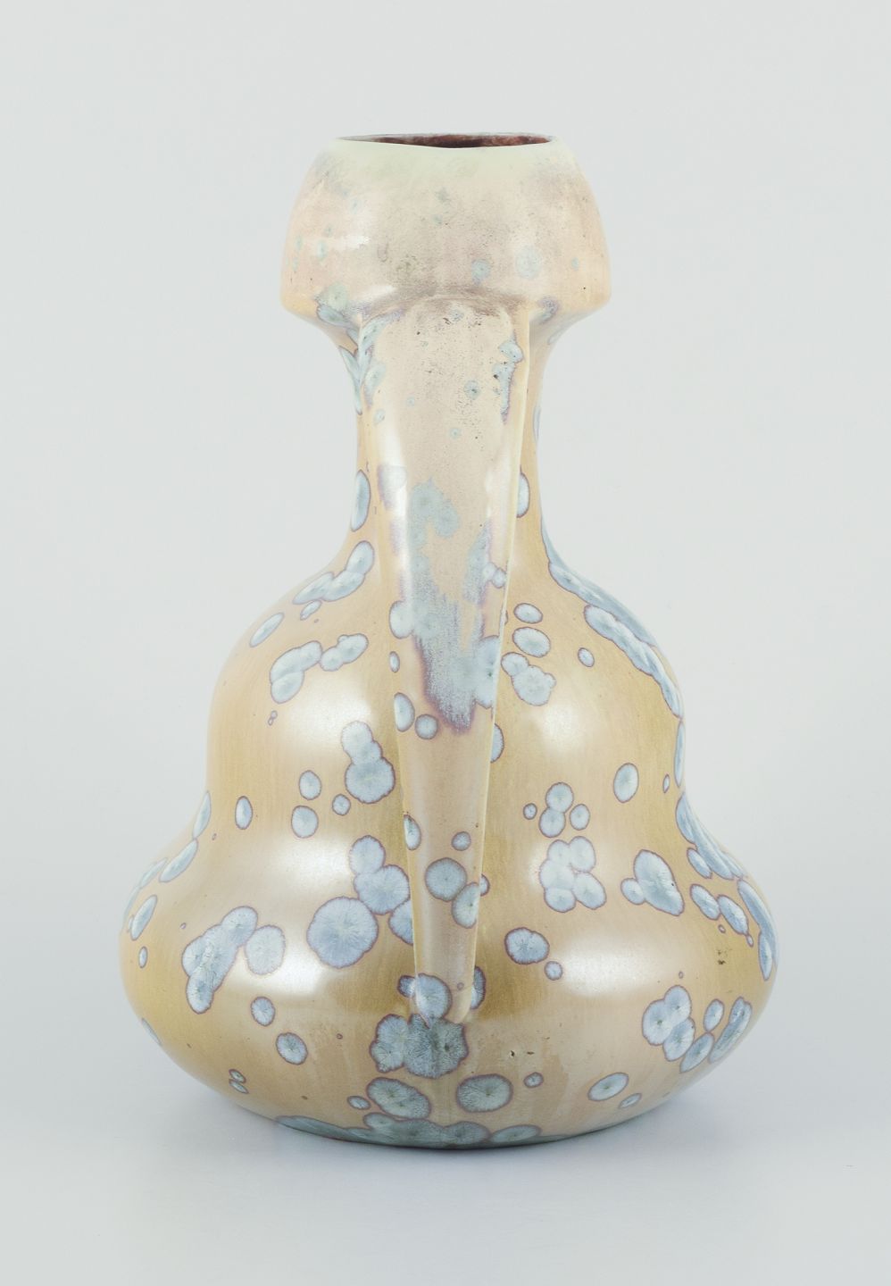 Art Nouveau keramikvase med hanke. Krystalglasur.