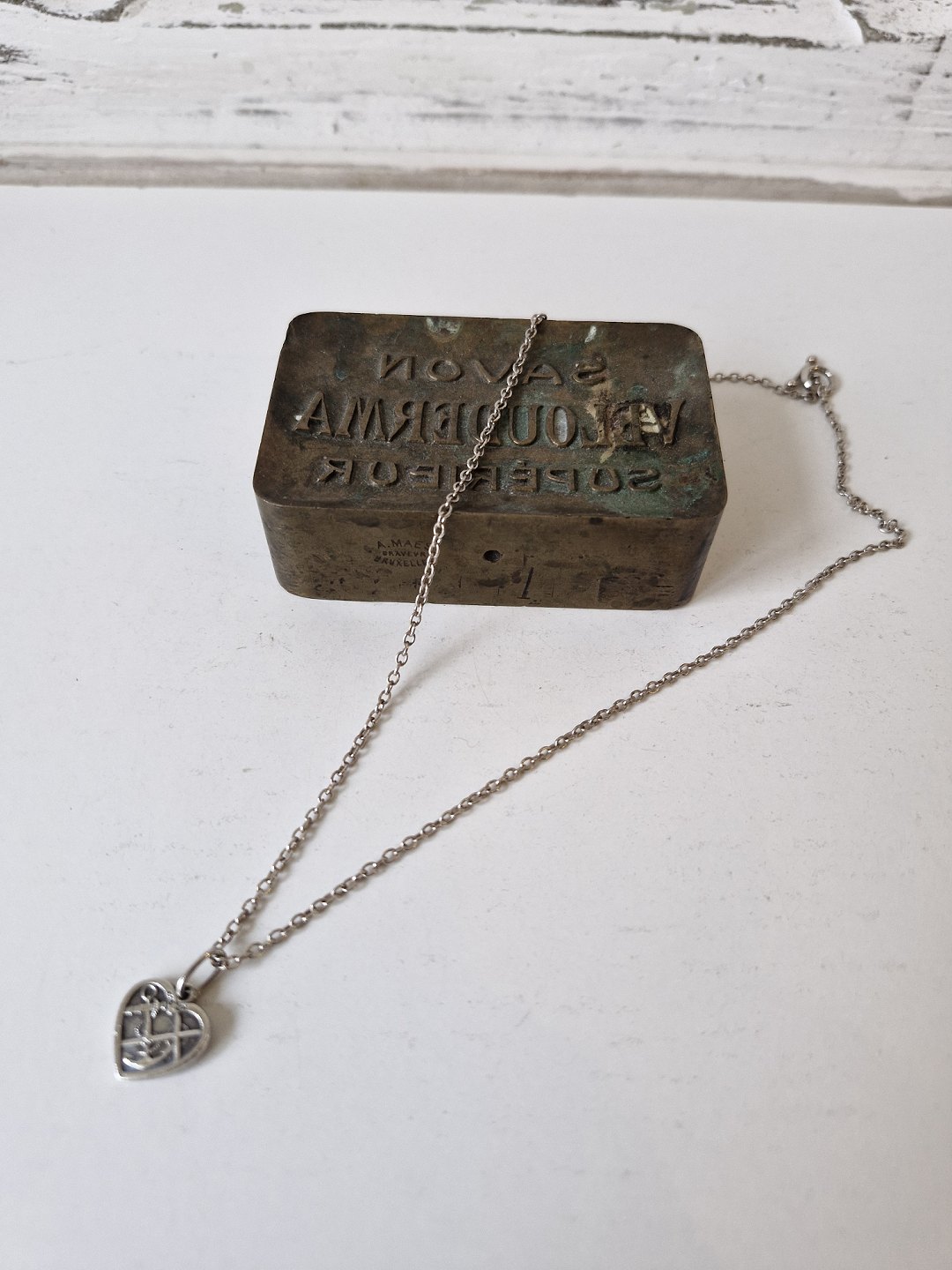 Georg Jensen halskæde i sterlingsølv med vedhæng i form af "Tro, håb & kærlighed"