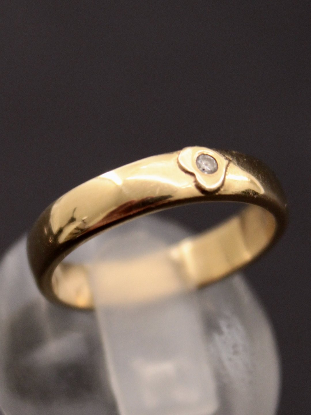 14 karat guldring størrelse 56 med diamant i hjerte stemplet 585 EGE for guldsmed Jørgen Ege Fredericia emne nr. 602923