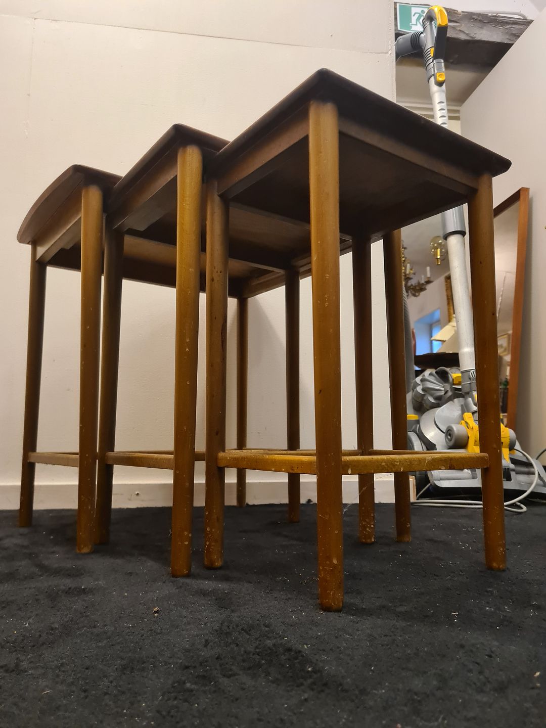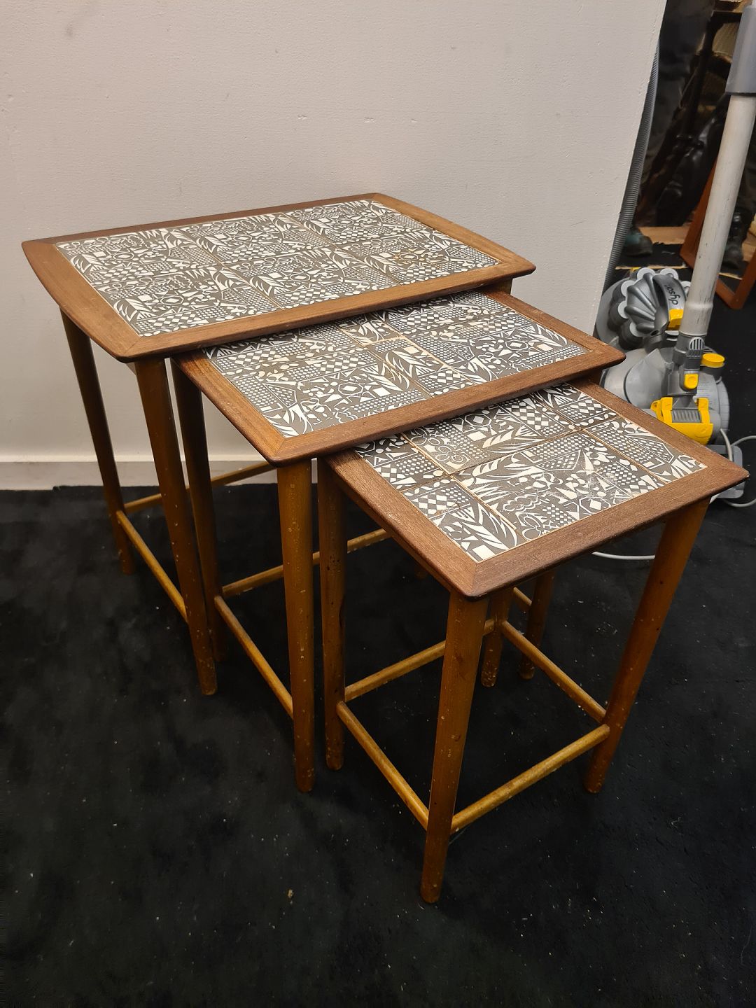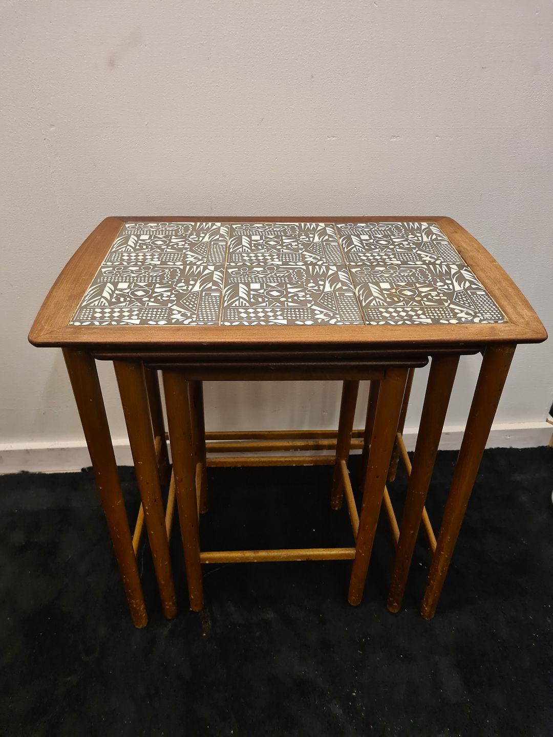 Dansk møbelproducent sæt indskudsborde m. plade i teak og kakler i stentøj