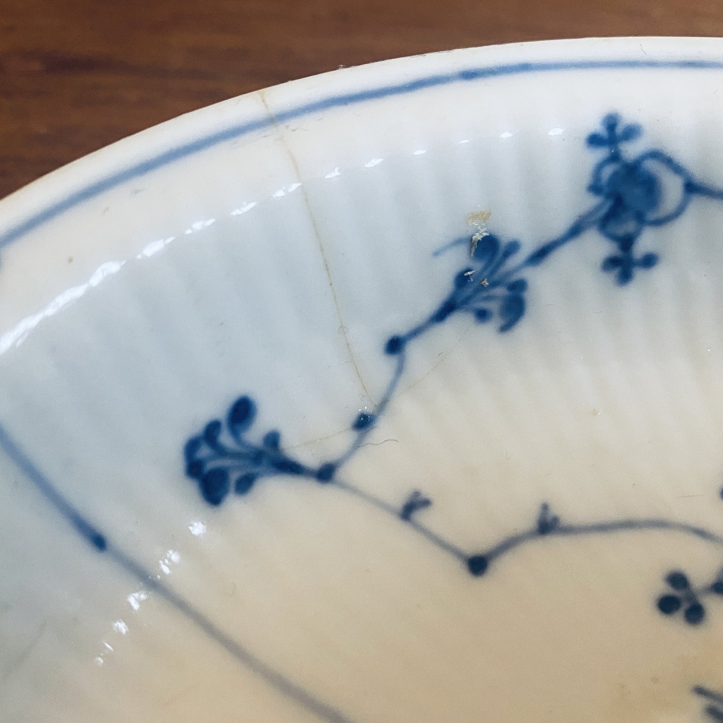 Ovalt musselmalet riflet, underfad til sovseskål.