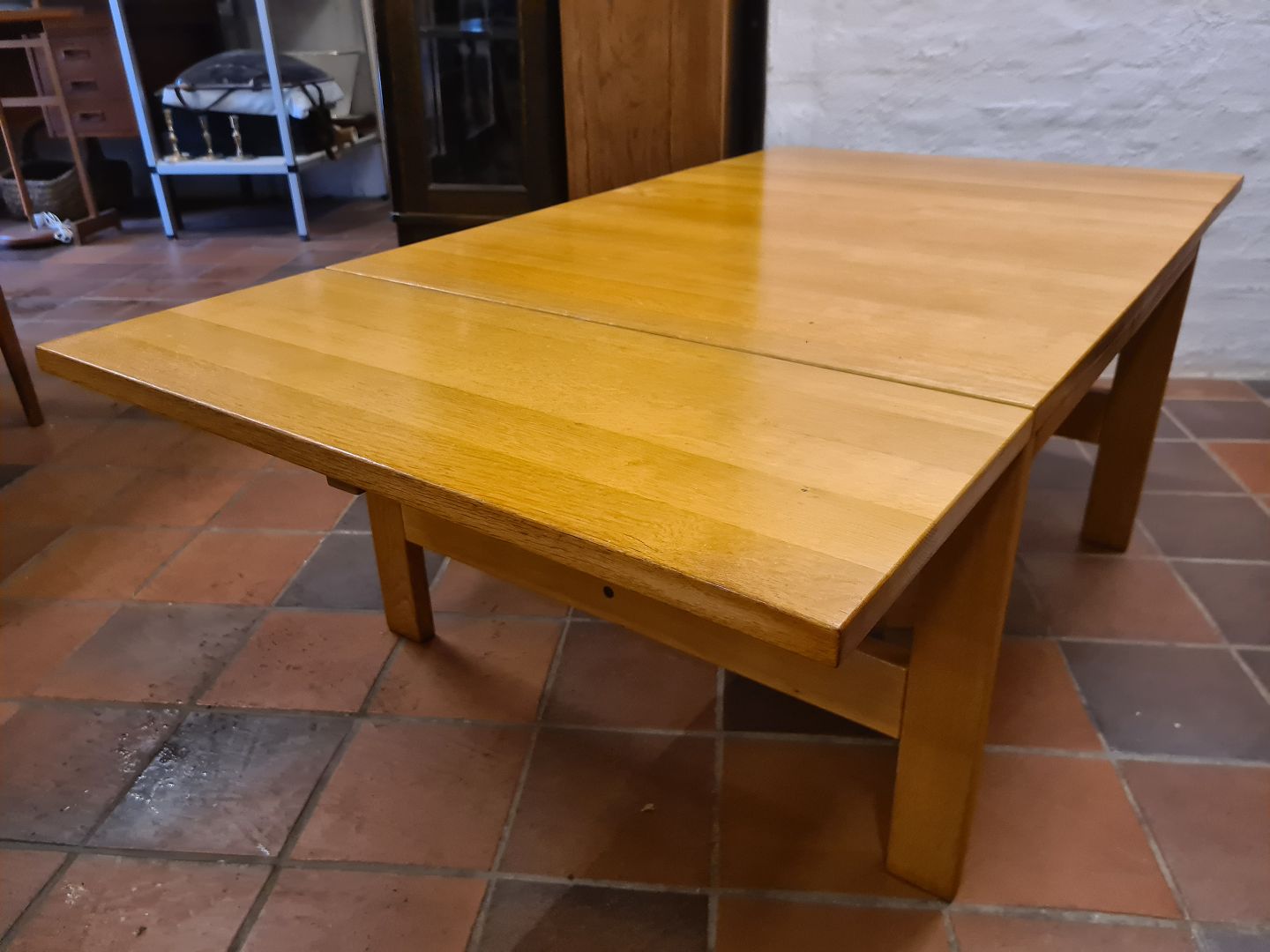 Dansk møbelproducent sofabord m. klapper udført i massiv lakeret egetræ.