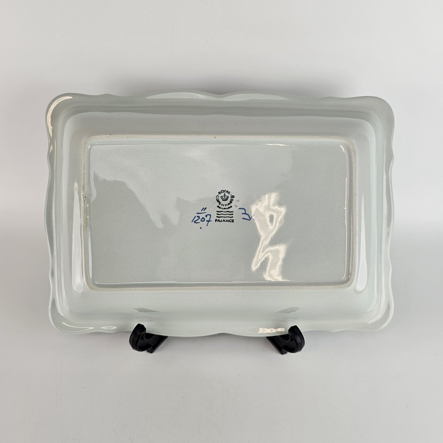 Rektangulært fad i fajance fra stellet Blå Tranquebar nr. 11/1207