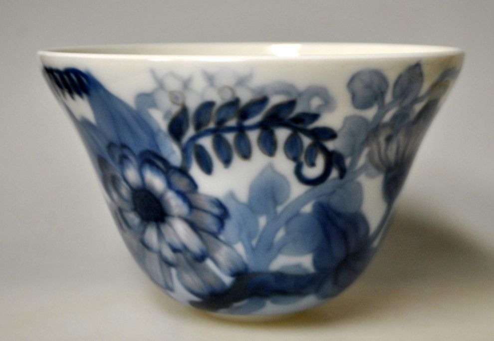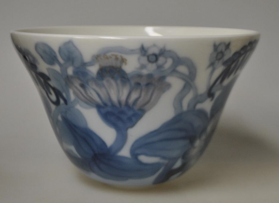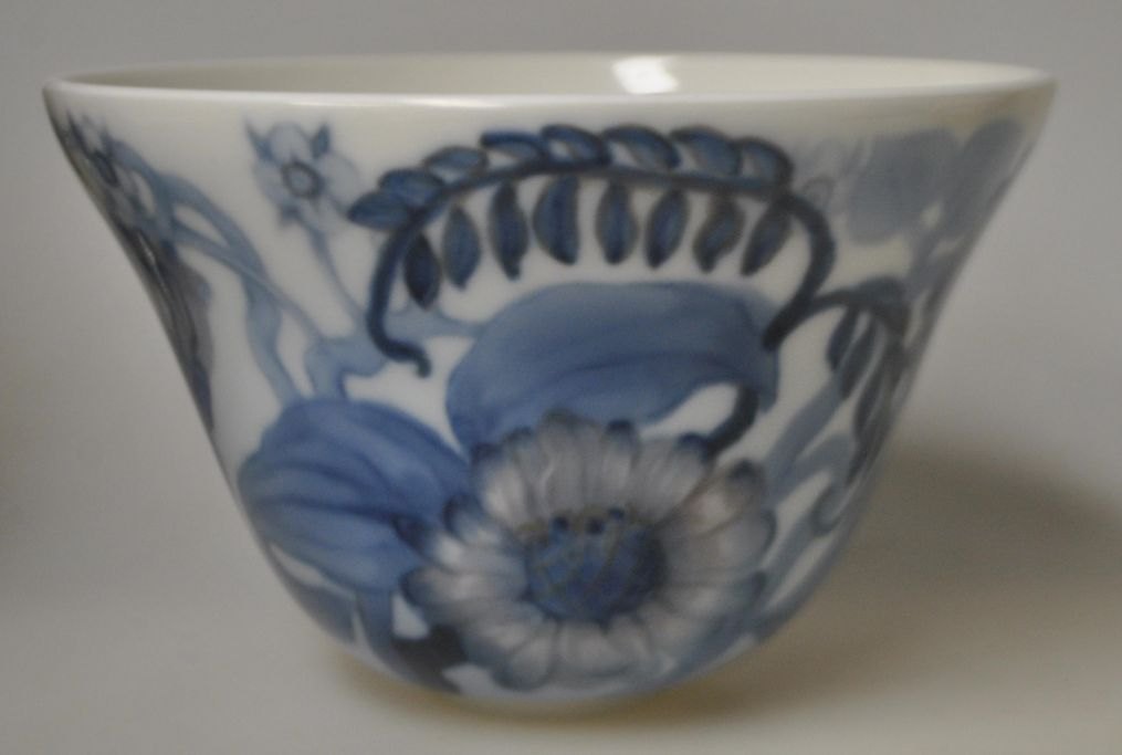 Bing & Grøndahl skål, no. 618, 19. årh. Danmark. Blåmalet med blomster. H.: 9 cm. Dia: 14 cm.