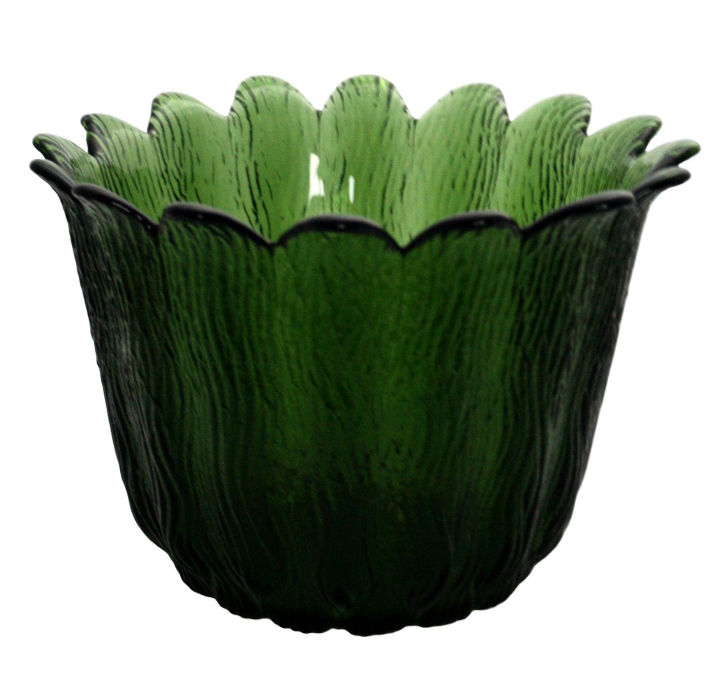 Holmegaard, SW serien, Urtepotteskjuler i grøn med tunget kant. Designet af Sidse Werner i 1981. Højde ca. 15 cm. Diameter ca. 22 cm. Pris: 325 kr. stk. Lager: 2