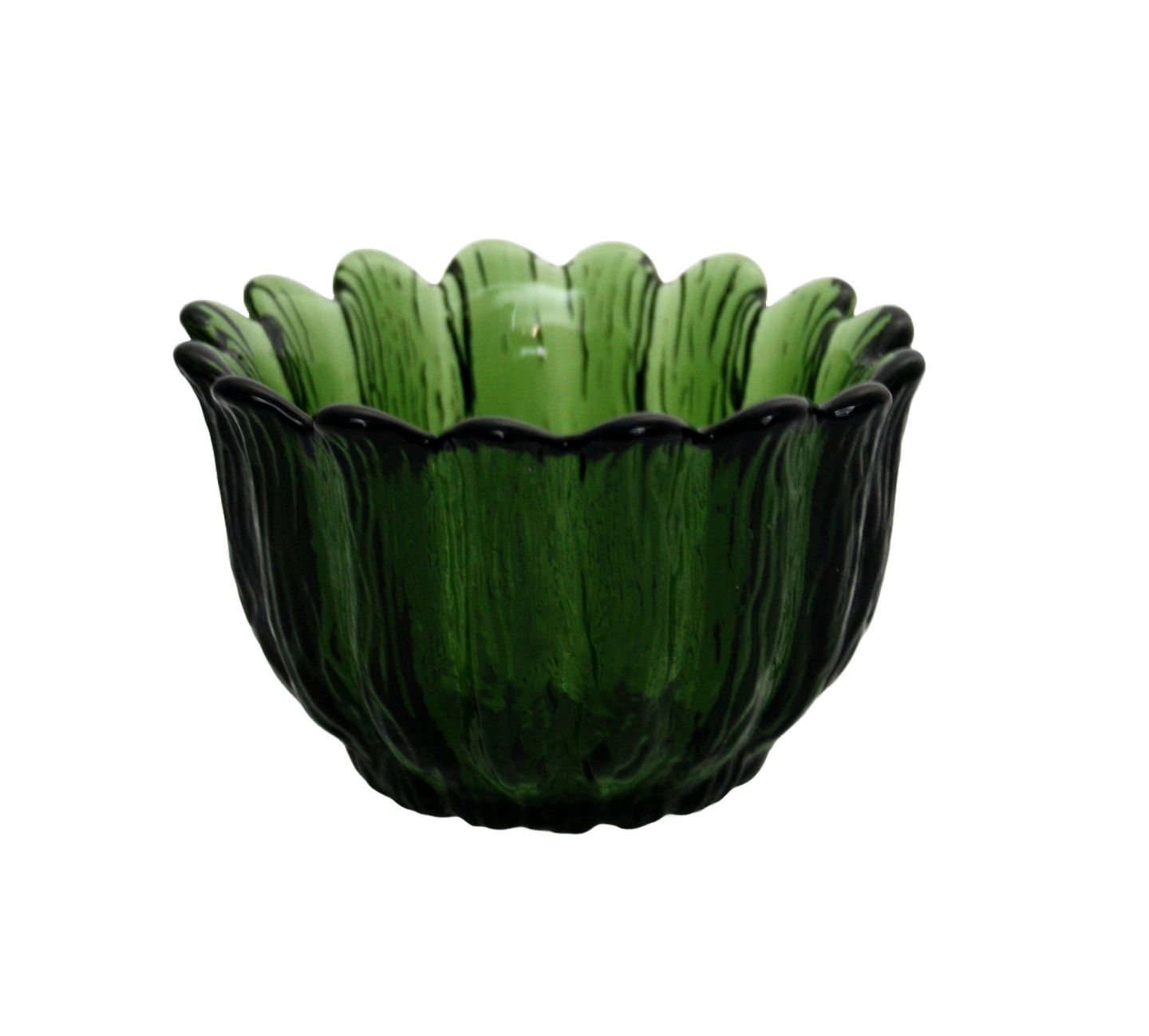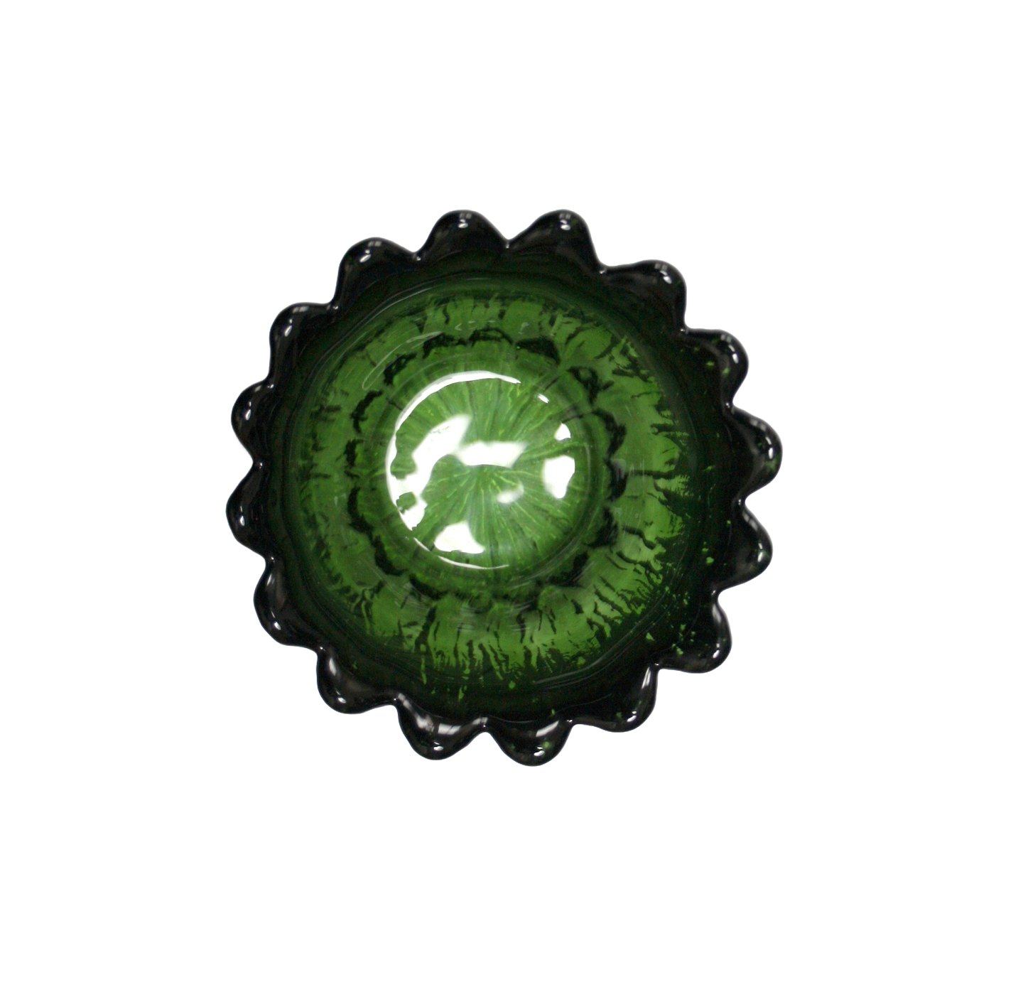 Holmegaard, SW serien, Urtepotteskjuler i grøn med tunget kant. Designet af Sidse Werner i 1981. Højde ca. 6,5 cm. Diameter ca. 10,5 cm. Pris: 150 kr. stk. Lager: 7