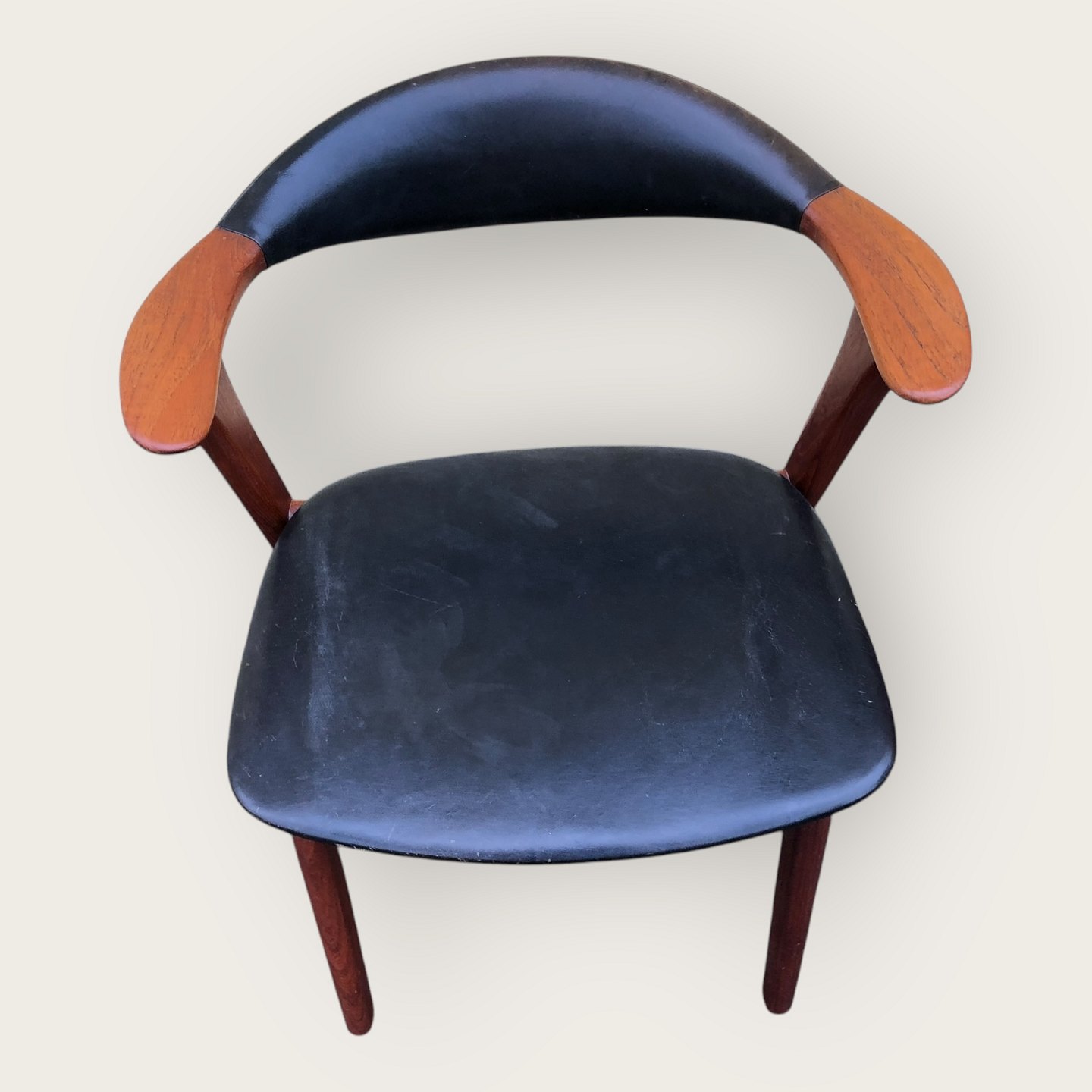 Armstol i pæn brugt stand, Danish modern fra 1960'erne, Teaktræ og læder, Bredde 58,5cm