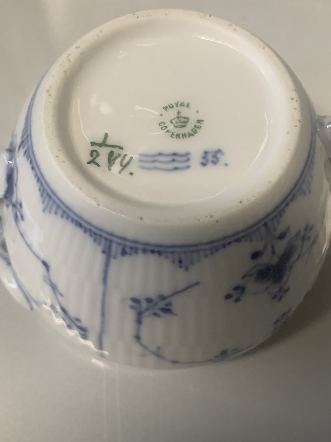 Royal Copenhagen Musselmalet Riflet, sukkerskål uden låg.