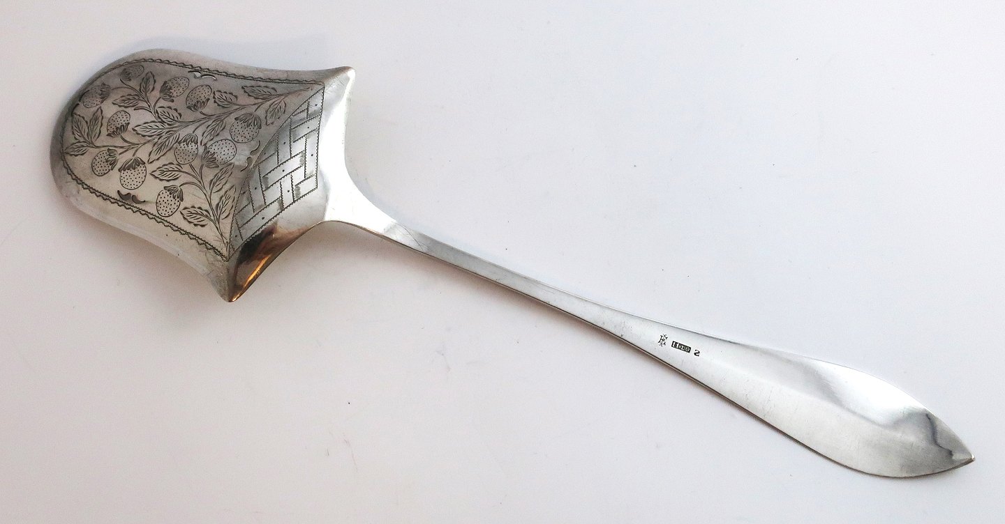 Empire. Sølvbestik 11L (687). Jordbærske. Længde 28 cm.