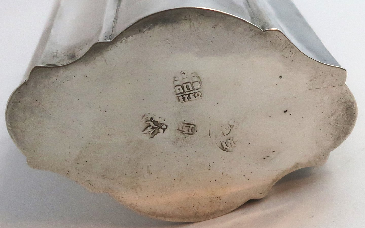 Tobias Didrichsen, København (1749-75). Sølv tedåse, ligeknækket (830). Højde 12 cm. Produceret 1752.