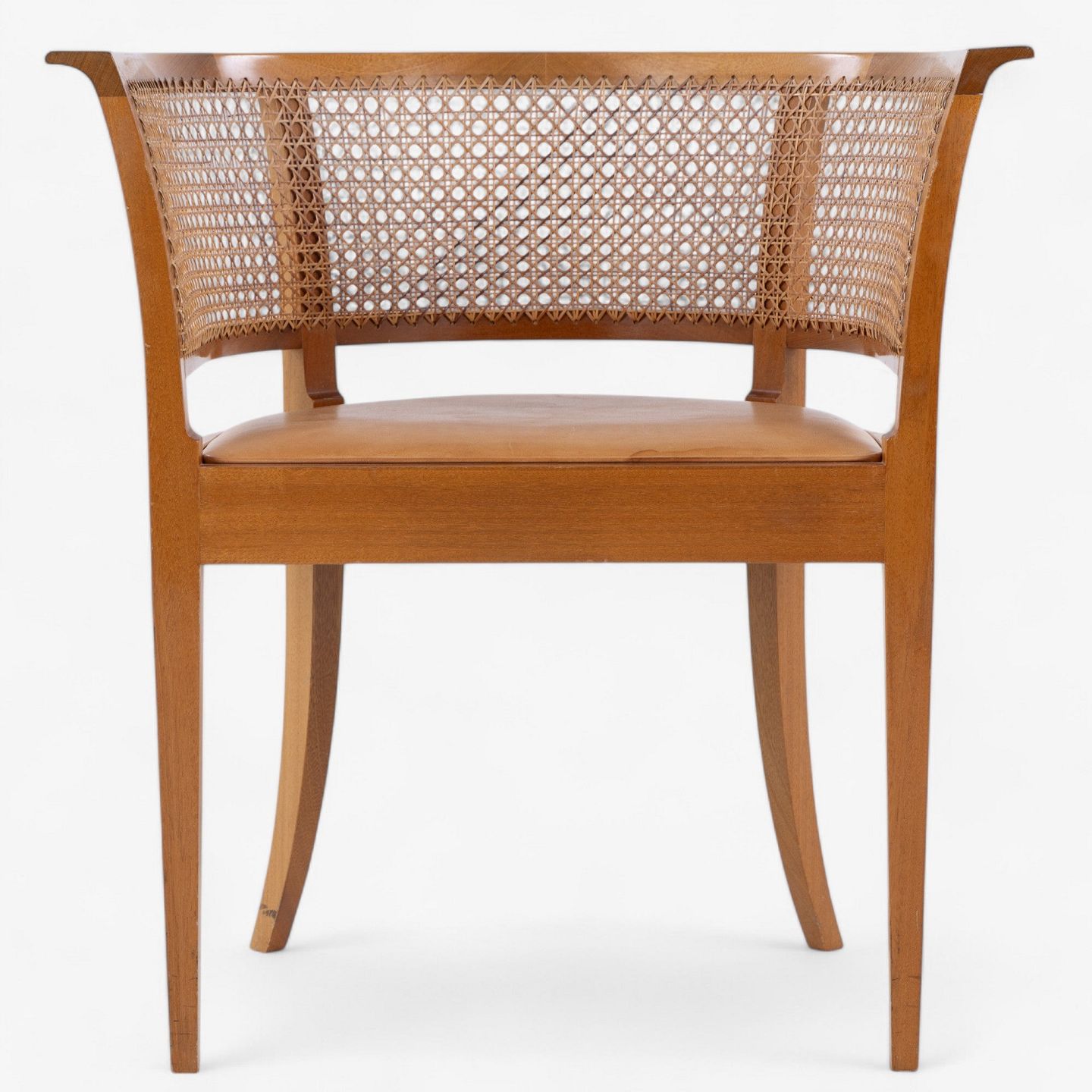 Model 9662 - 'Faaborg'-armstol i mahogni med sæde i patineret naturskind.