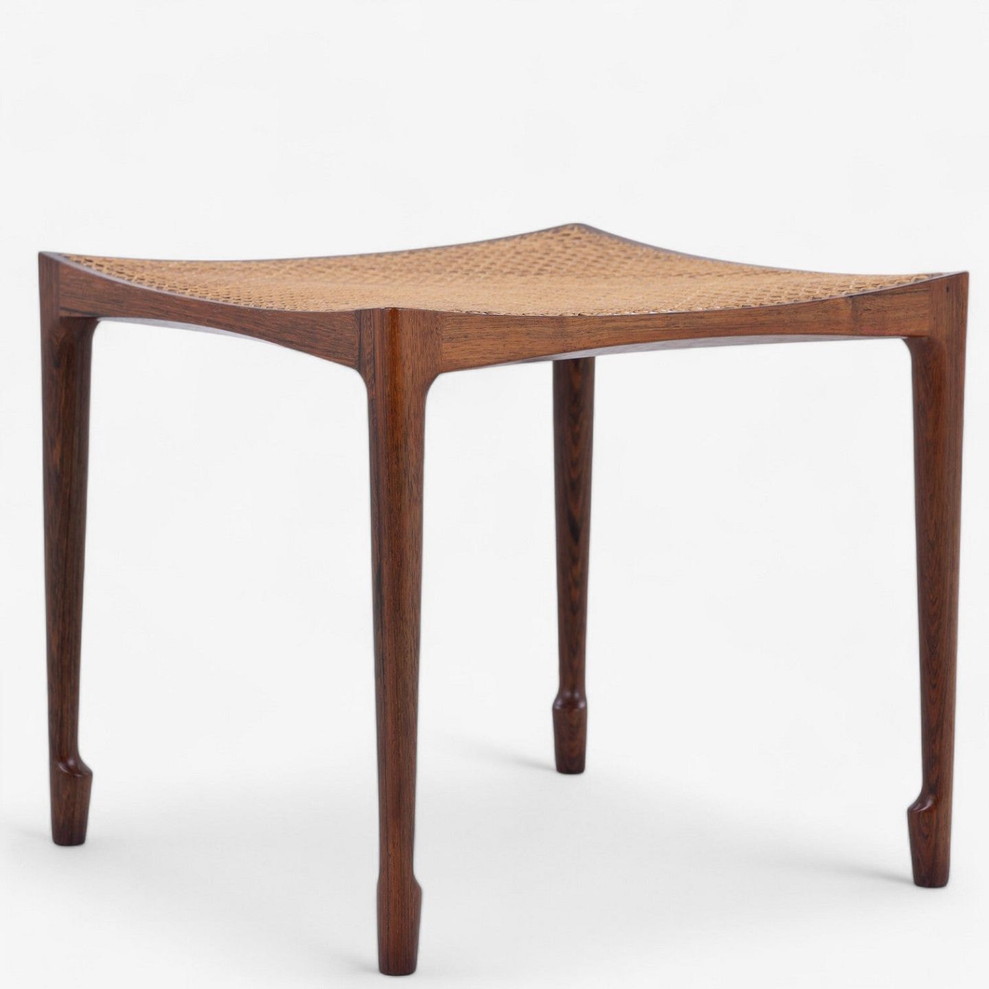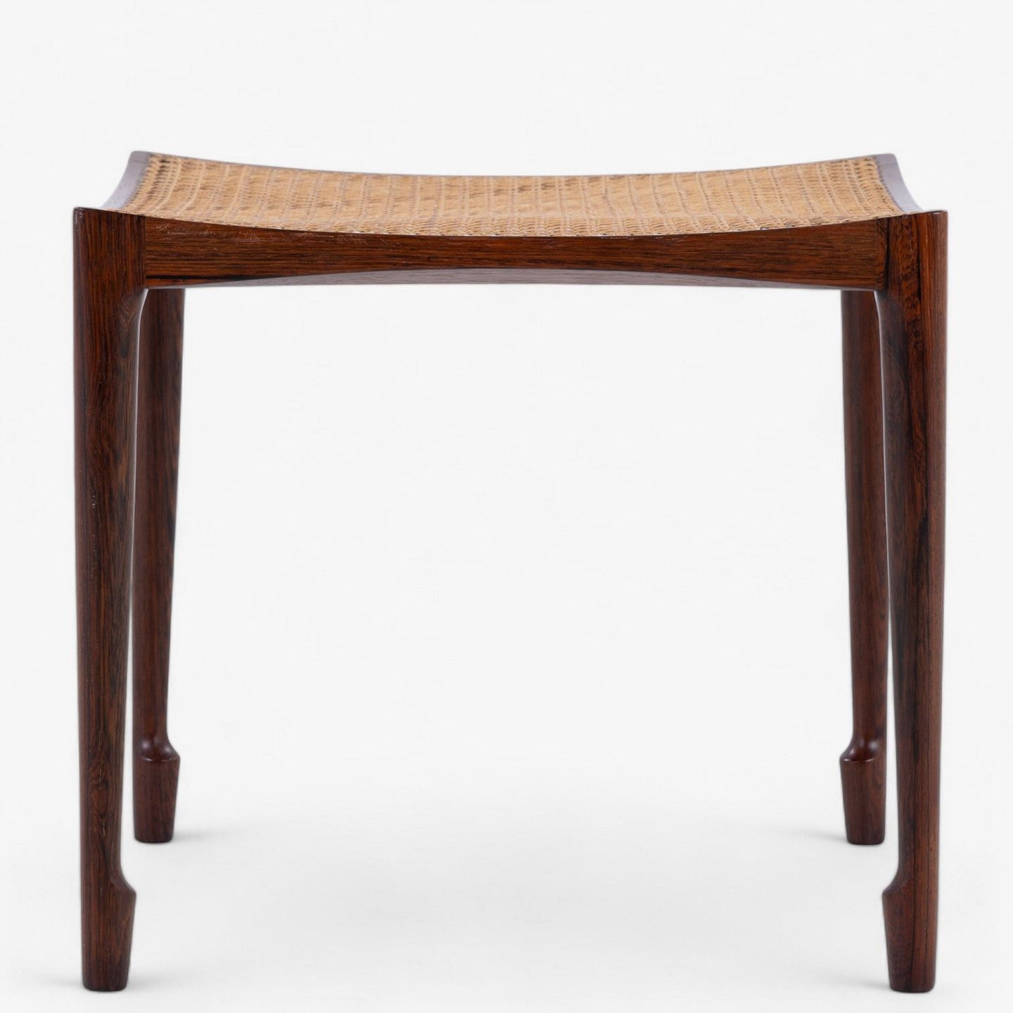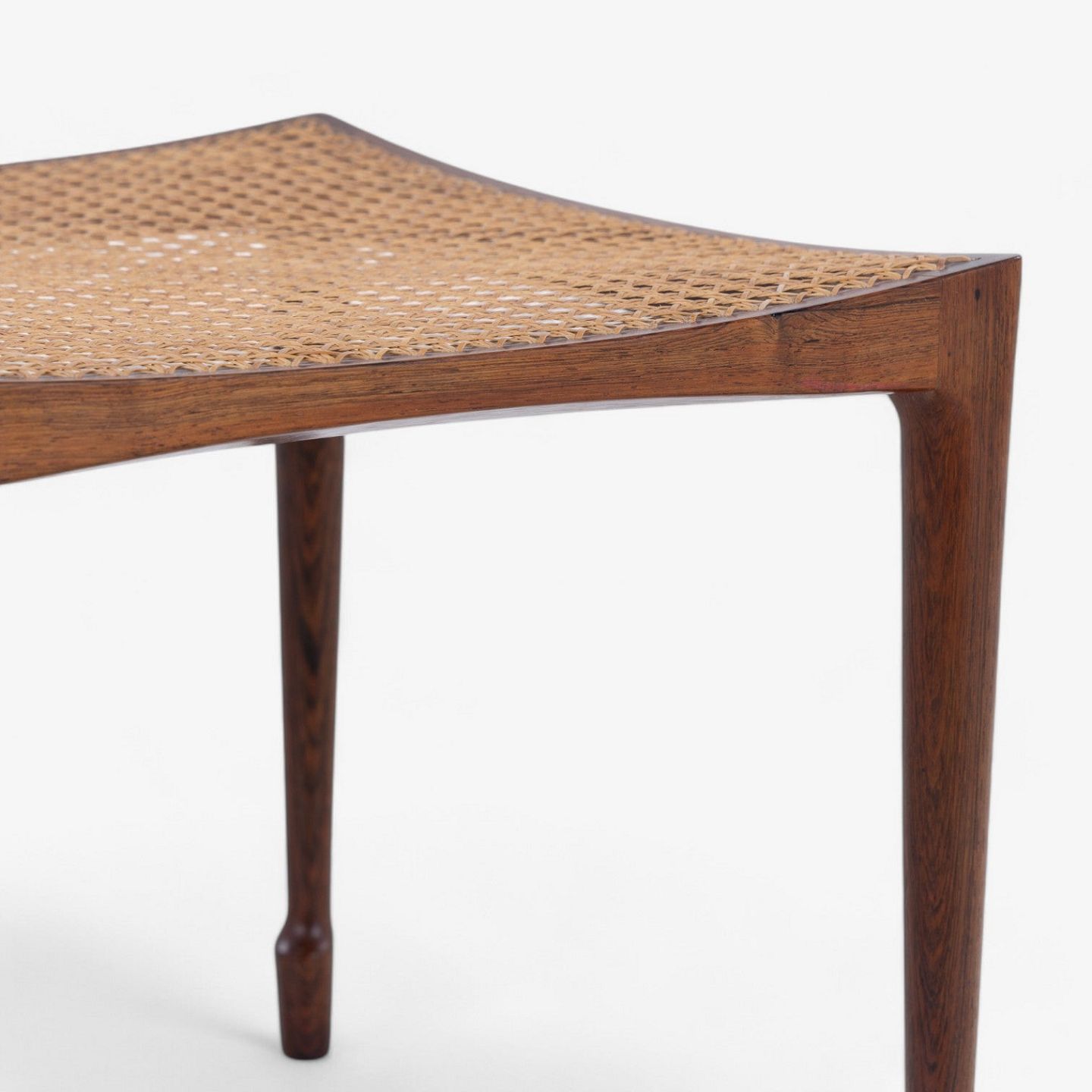 Stool in Brazilian rosewood with profiled legs and original french cane.