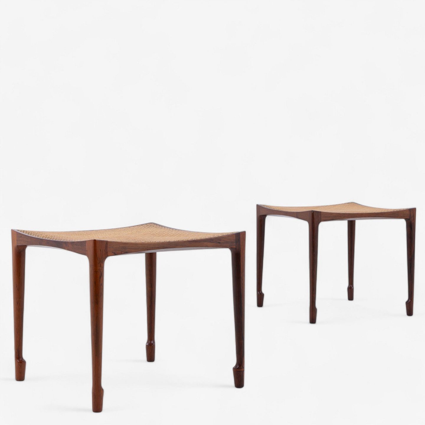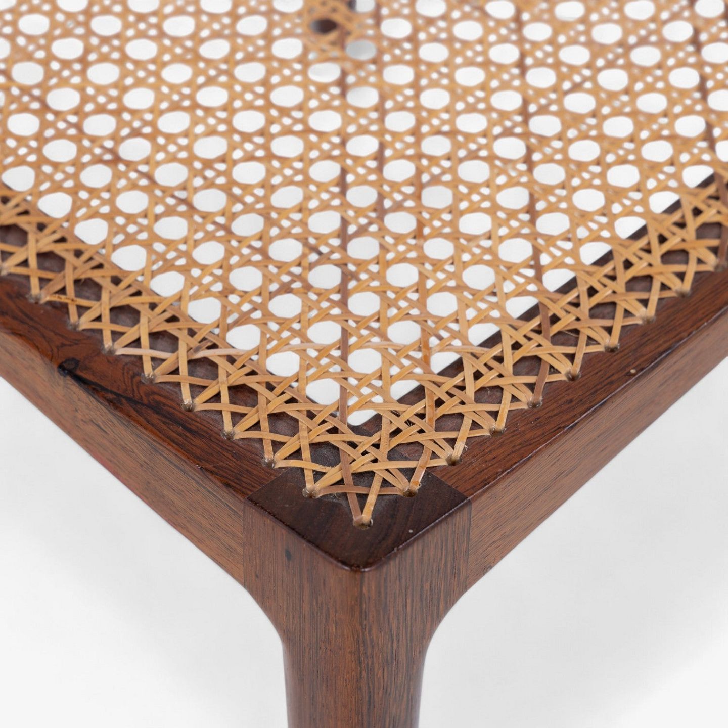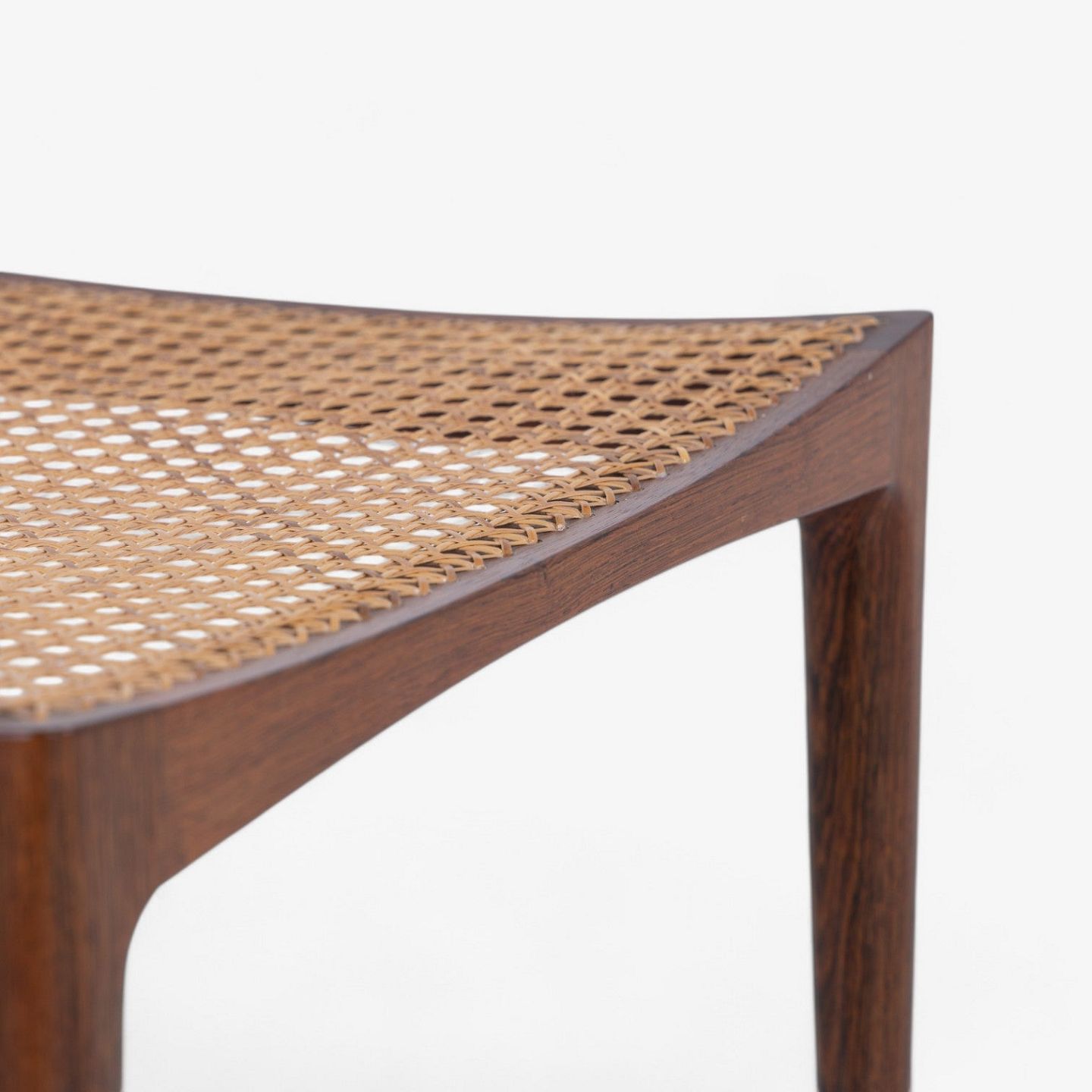 Stool in Brazilian rosewood with profiled legs and original french cane.