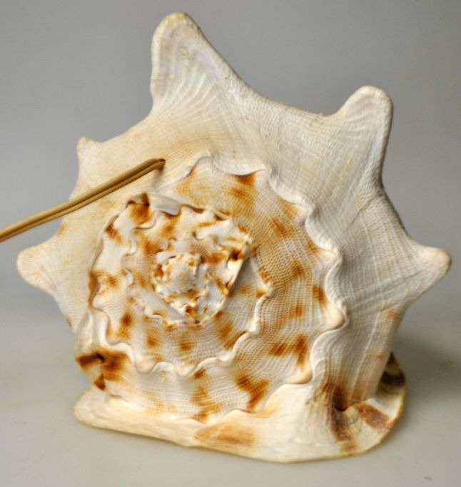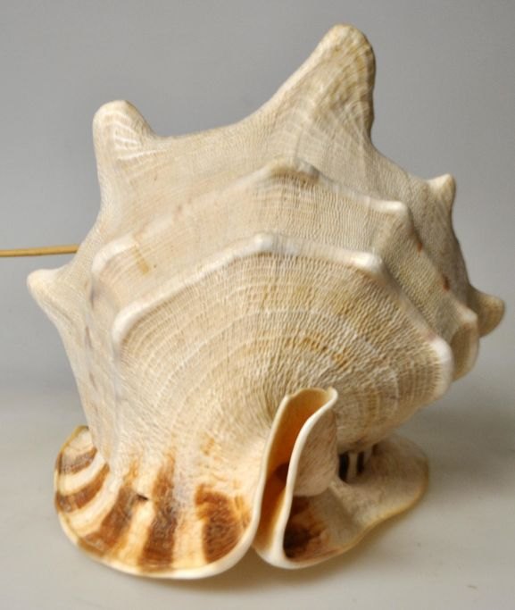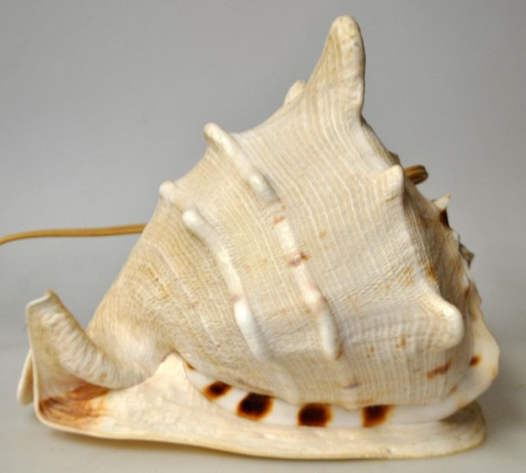 Konkylie lampe. Stor konkylie med stik til el. H: 18 cm. B: 21 cm. L: 22 cm.