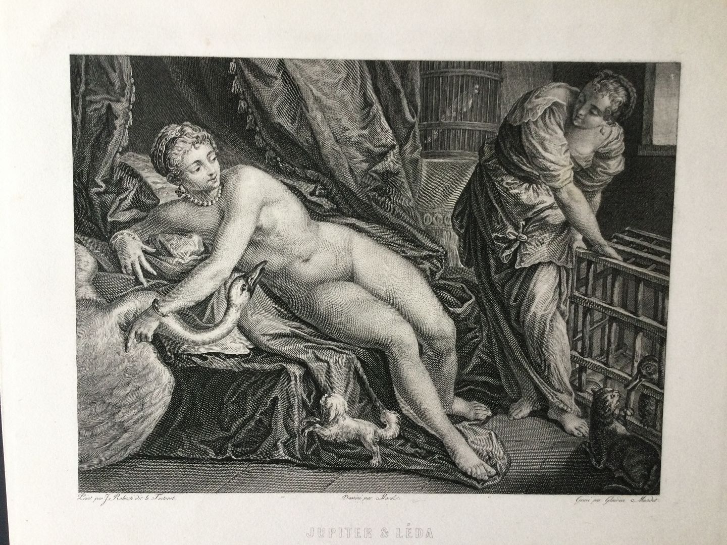 Radering af E.J. Glairon-Mondet . "Jupiter & Léda"