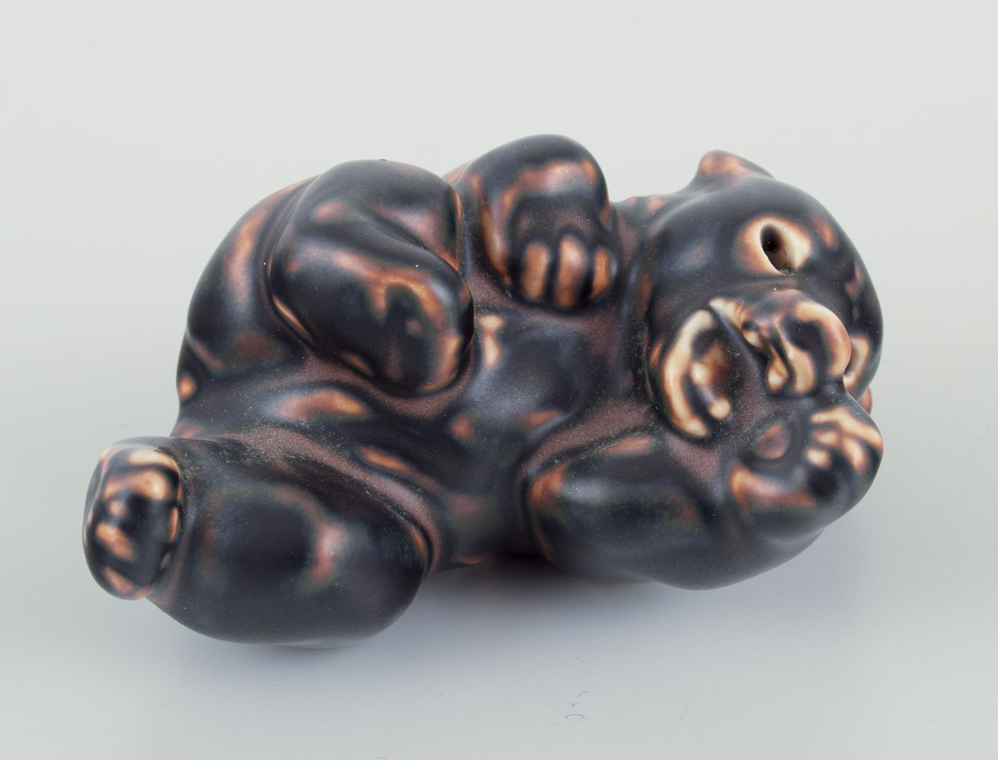 Knud Kyhn for Royal Copenhagen. Fire stentøjsfigurer af brune bjørneunger.