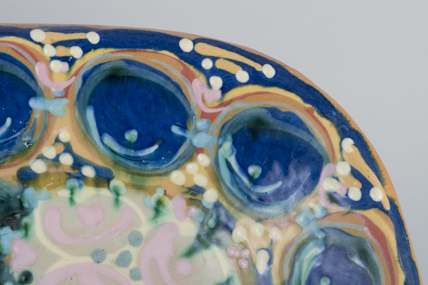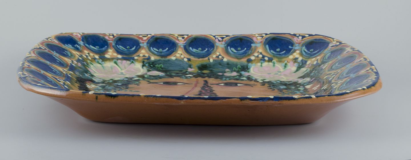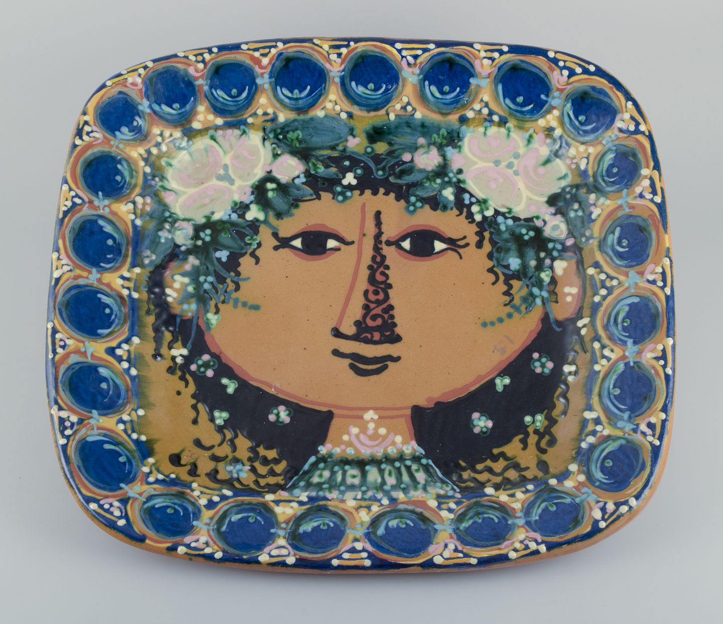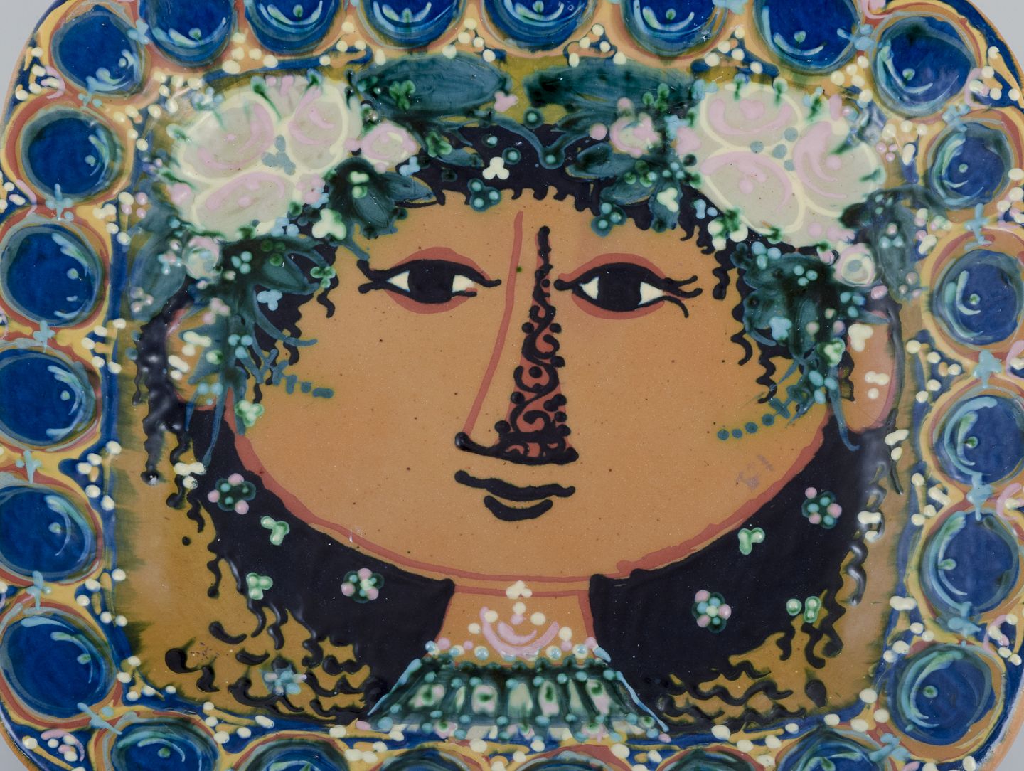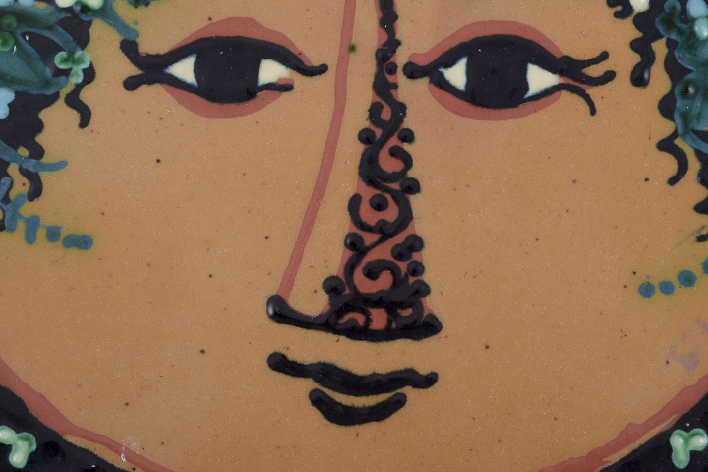 Kvindeansigt, polykrom glasur. Håndglaseret. Unika relief fra eget værksted.