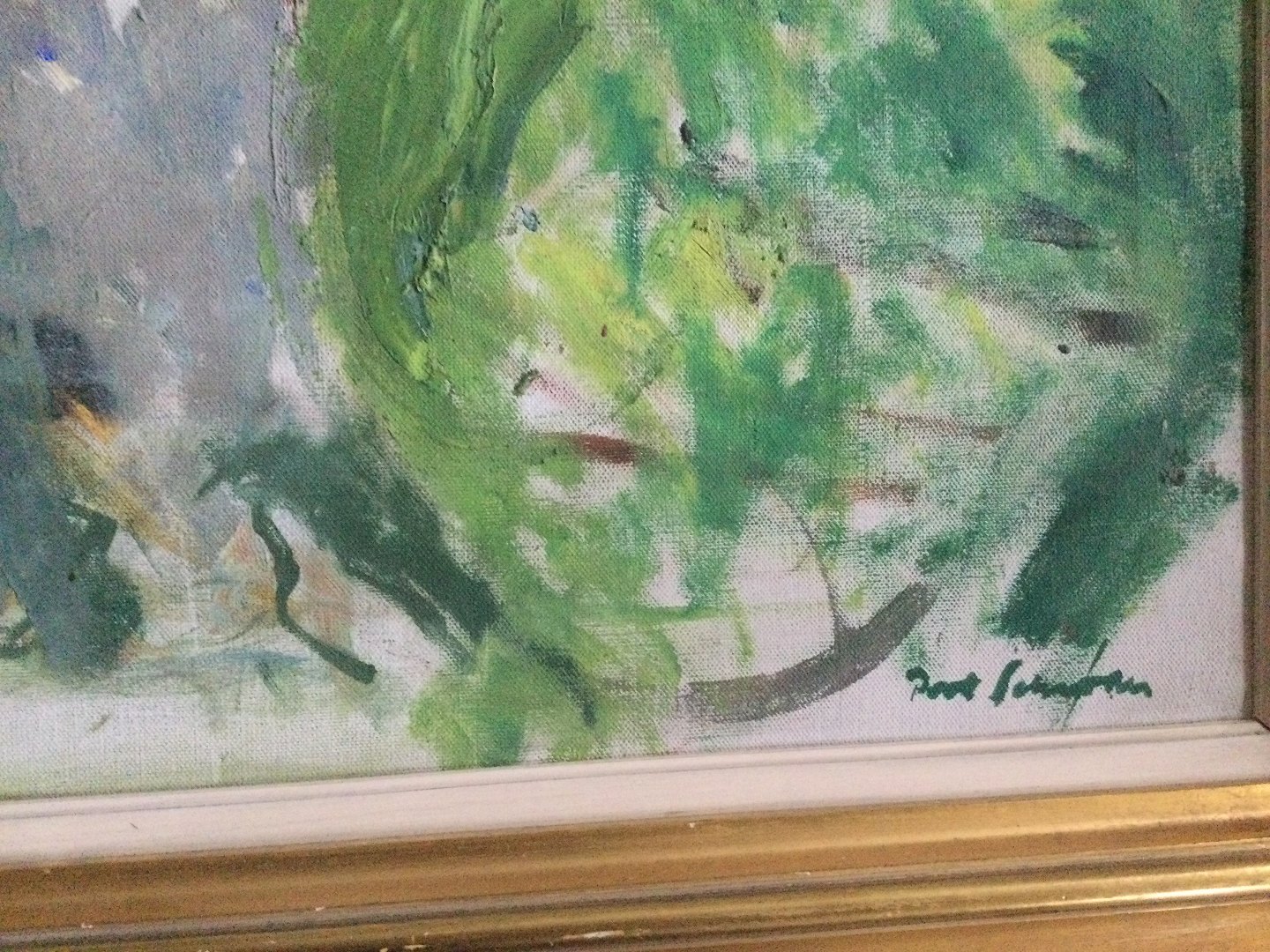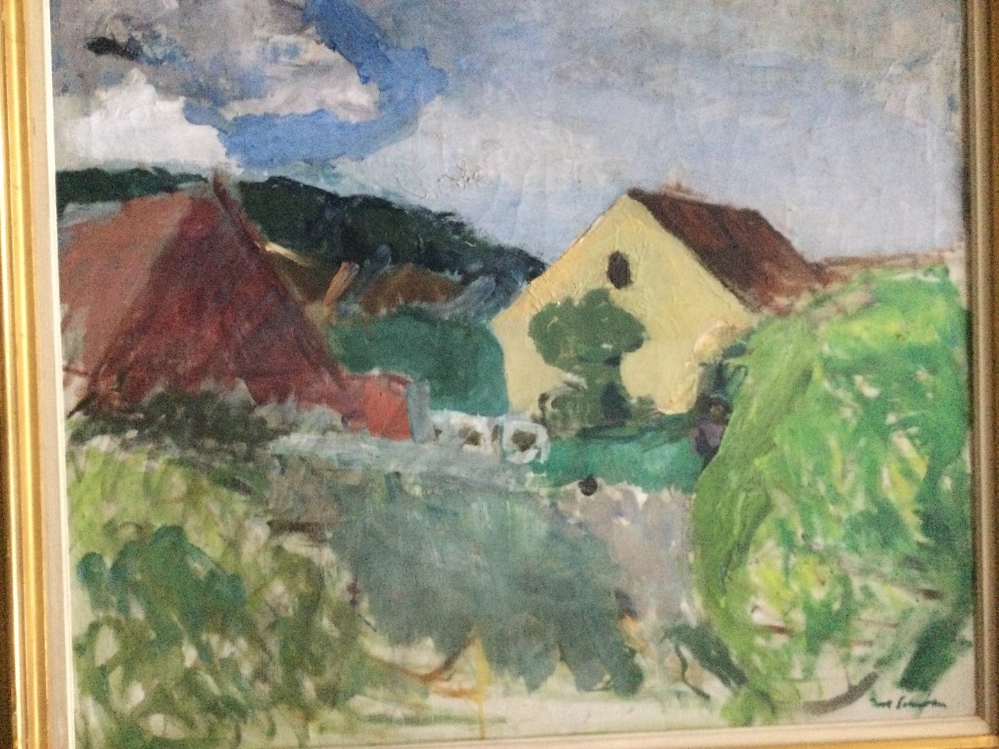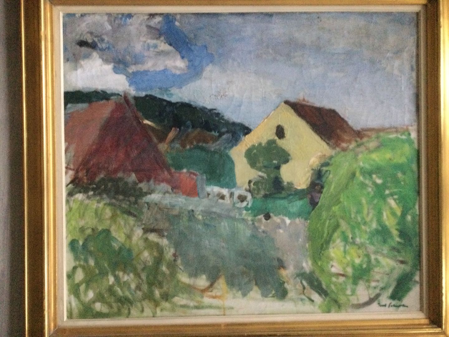 Maleri af Povl Schrøder - Landskab med huse.