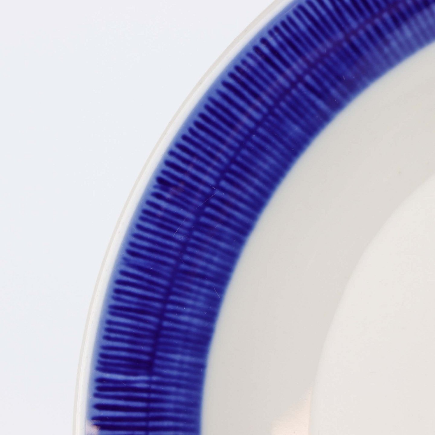Blå Koka er af hvidt glaseret porcelæn med et bånd af mørk blå