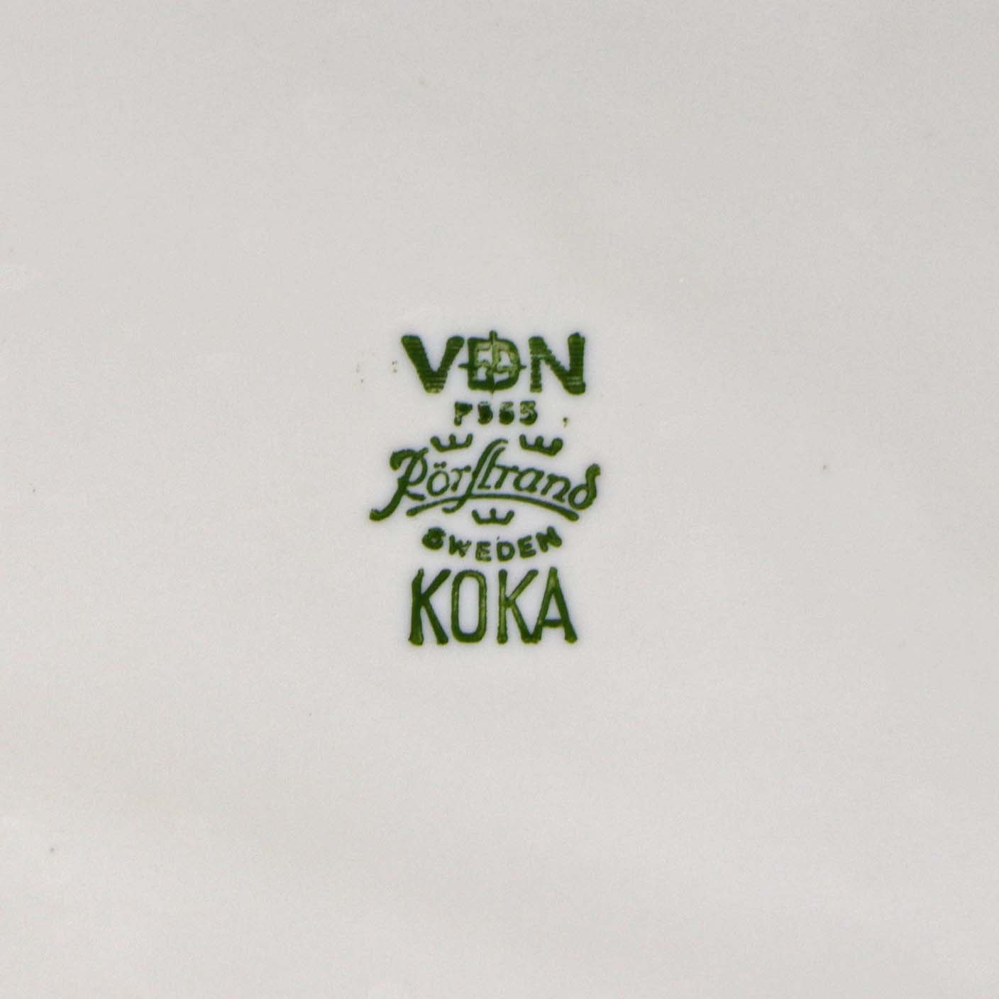 Blå Koka er af hvidt glaseret porcelæn med et bånd af mørk blå