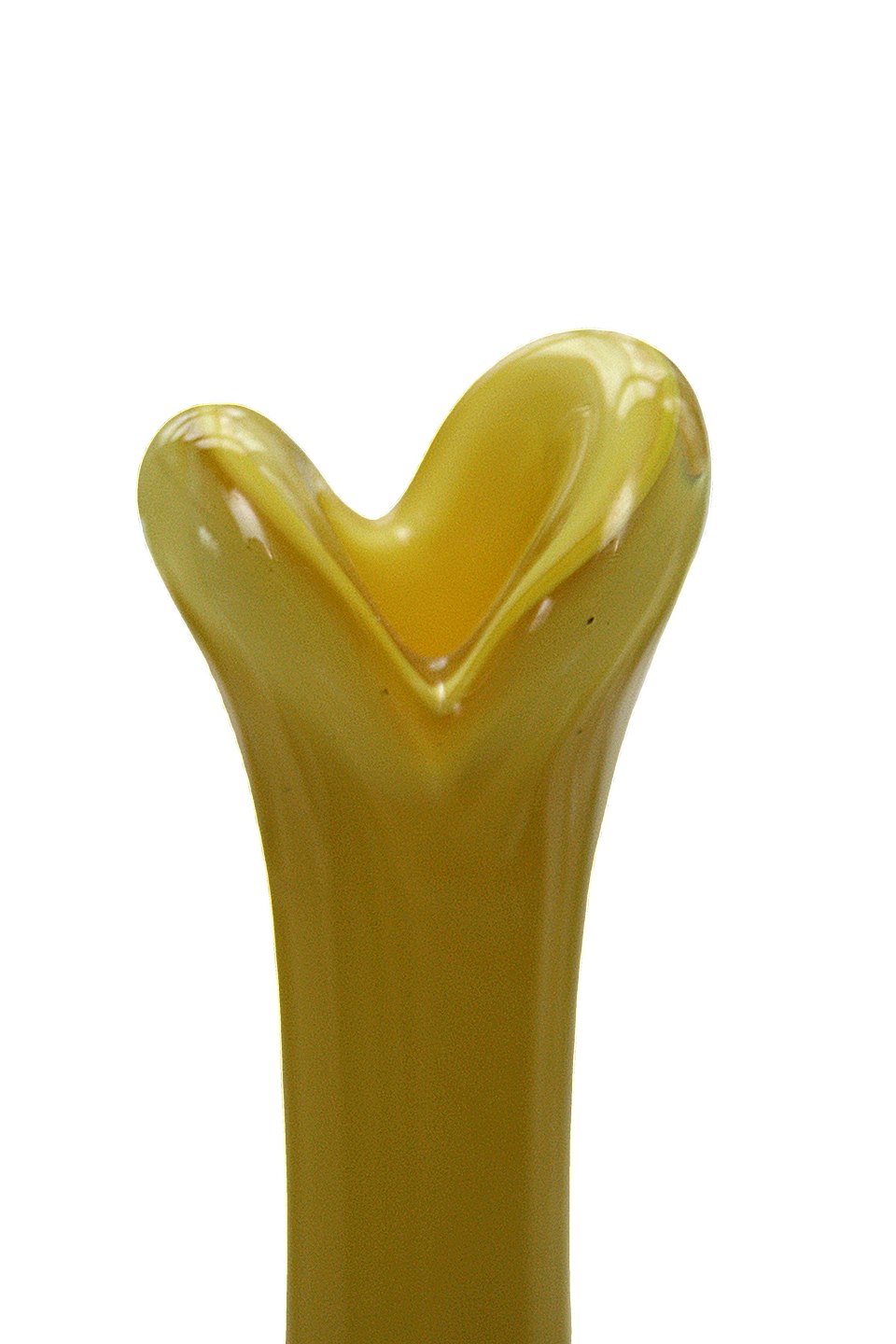 Næbvase i gennemfarvet gult glas med klar bund. Højde 26 cm. Største diameter 7 cm. Ingen signatur i bund. Flot stand. Pris: 375 kr. stk. Lager: 1