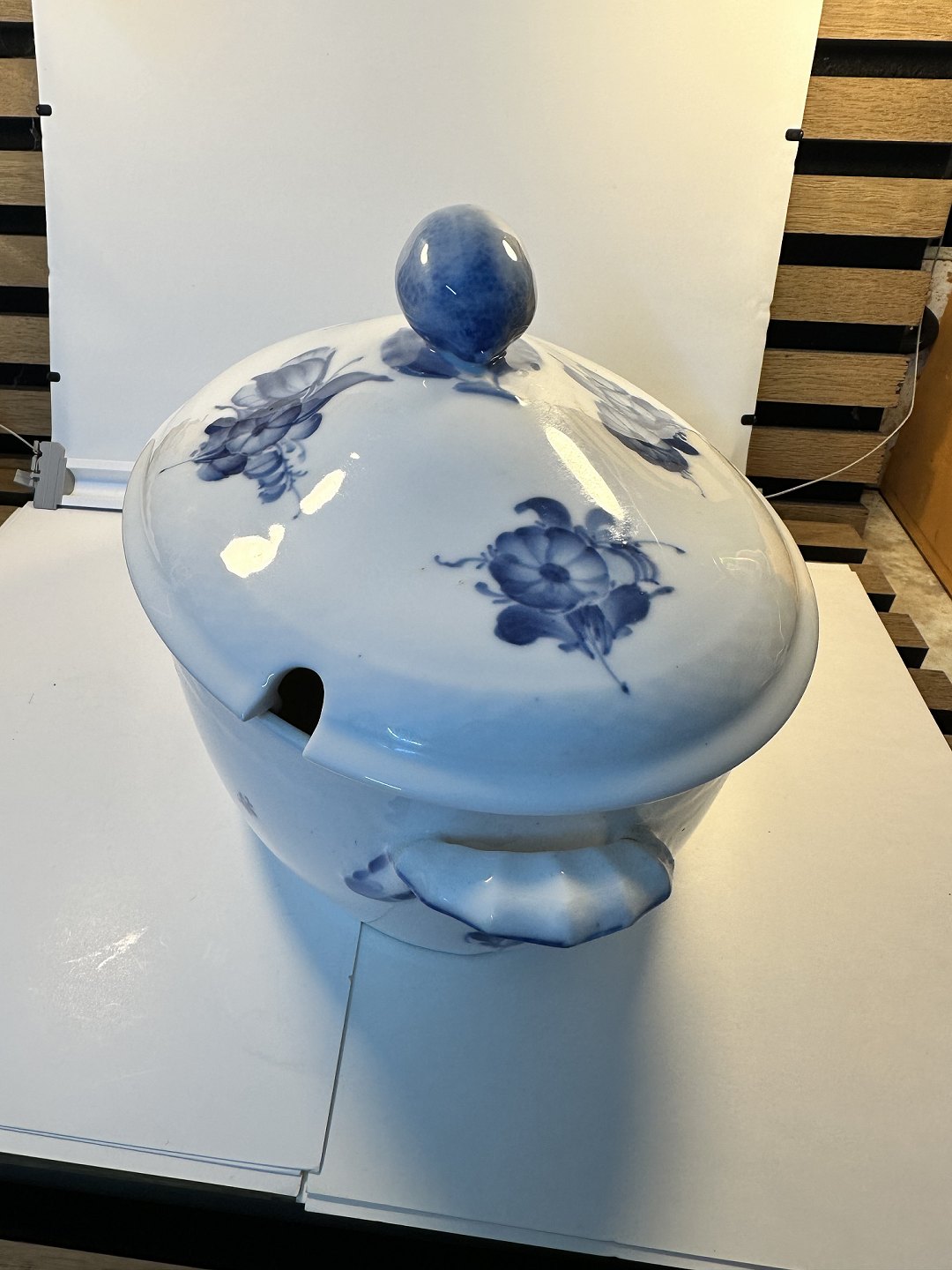 Royal Copenhagen, blå blomst, oval suppeterrin, lågfad