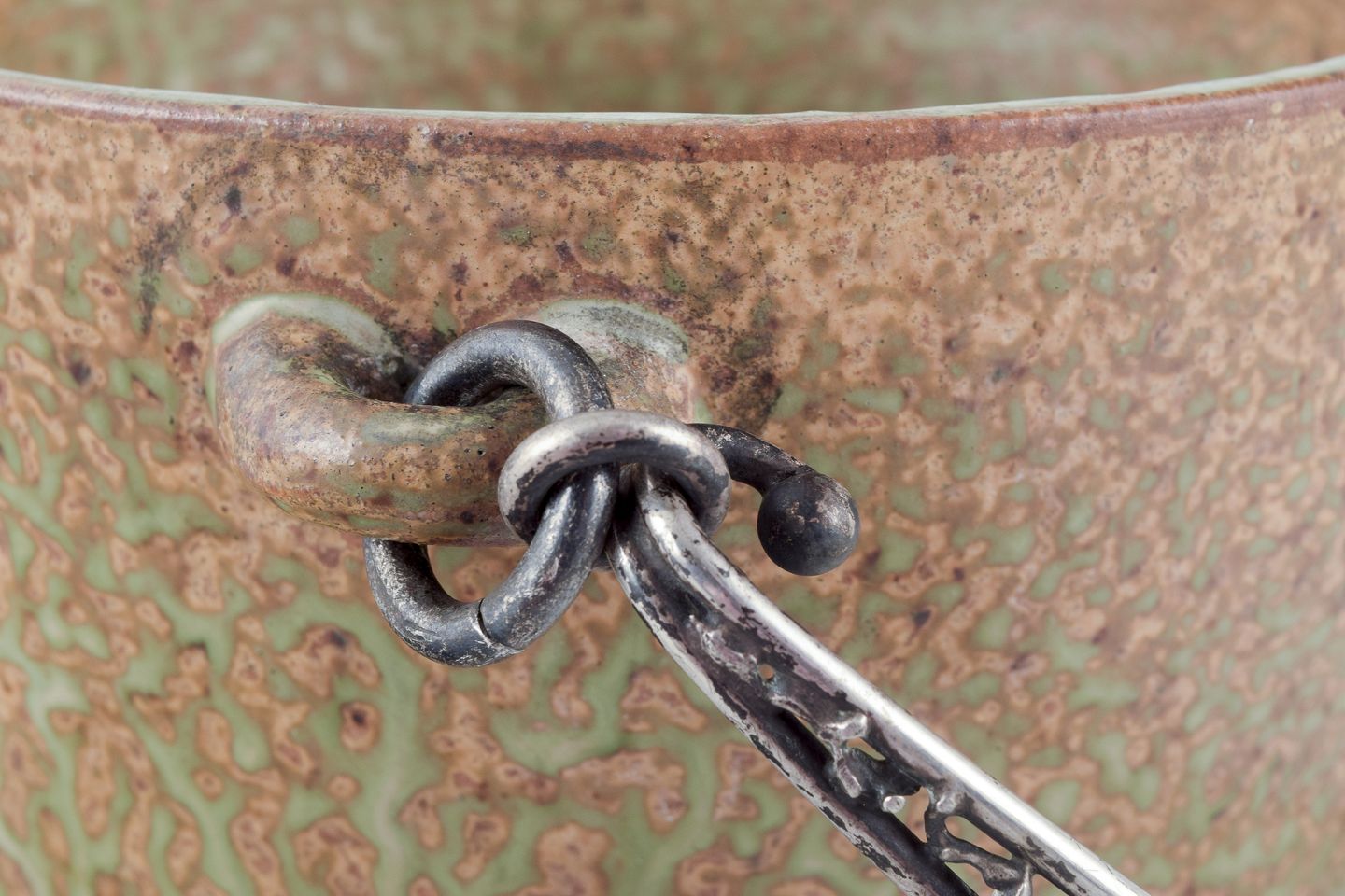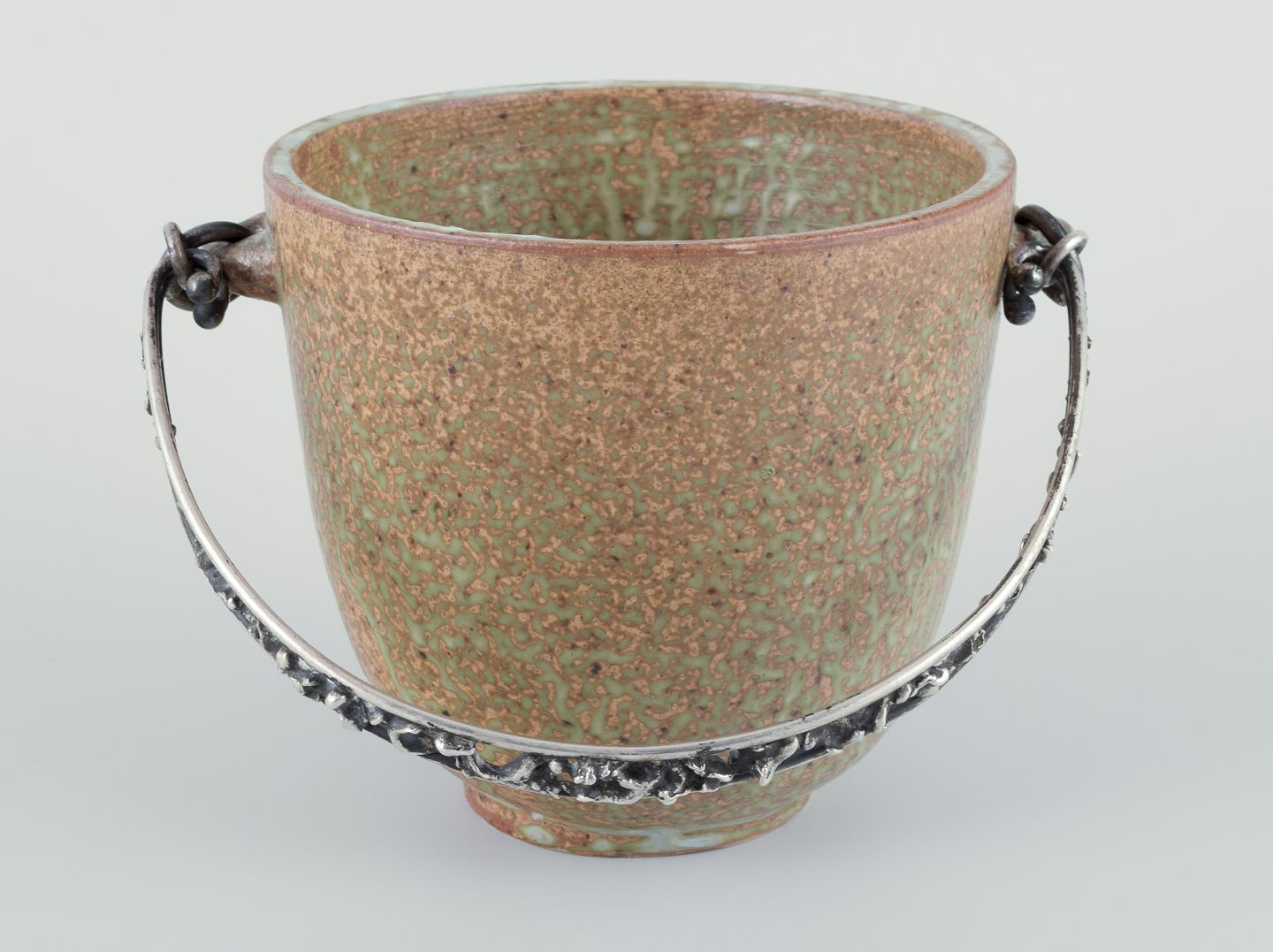 Arne Bang og Aage Weimar. Stor iskøler i keramik, hank i tretårnet sølv.
