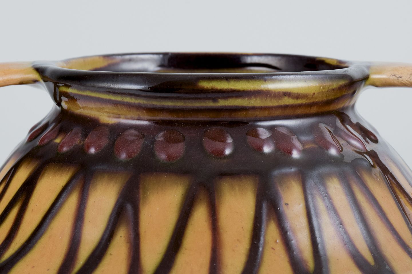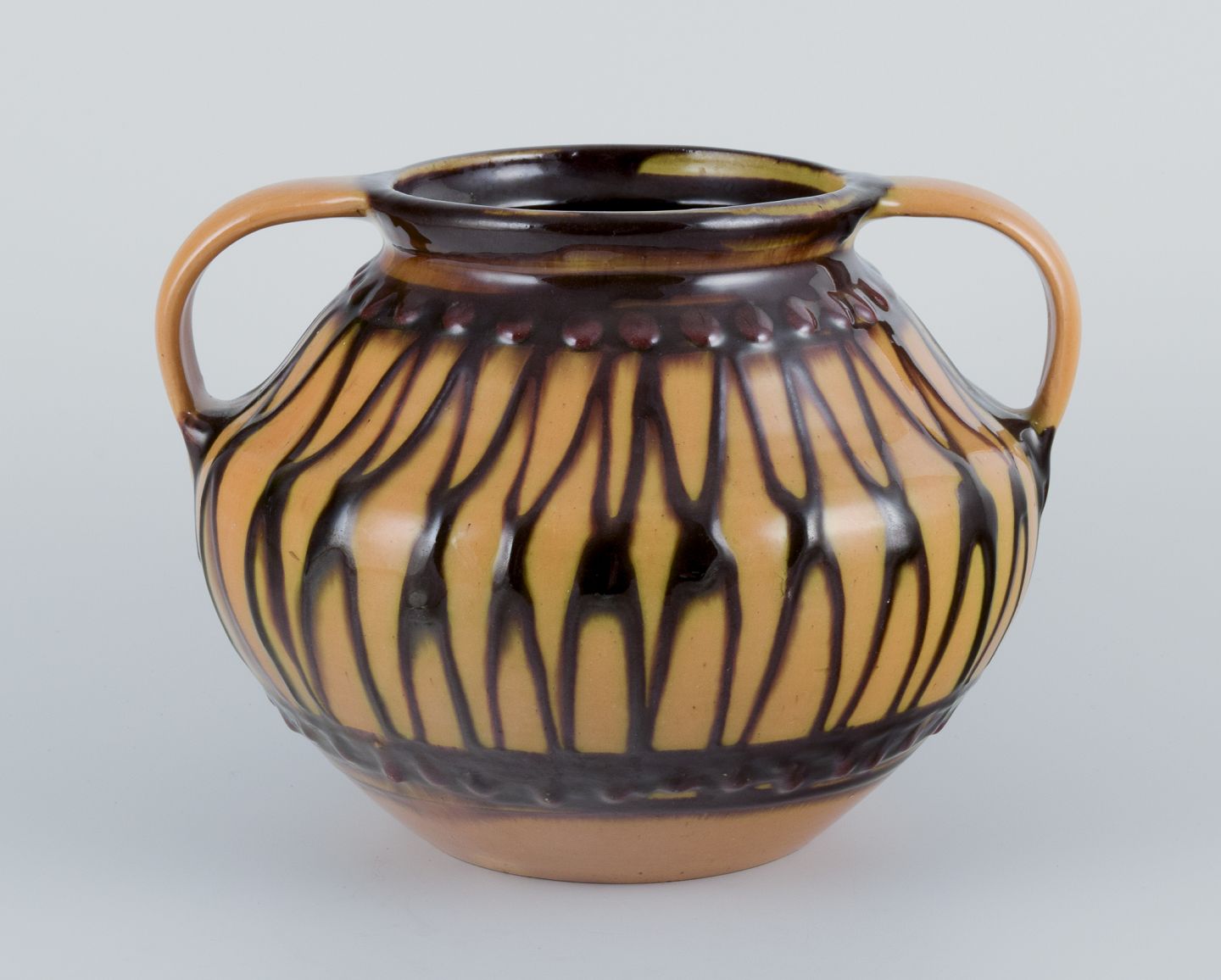 Klassisk form med to hanke. Kohornsteknik. Håndlavet.