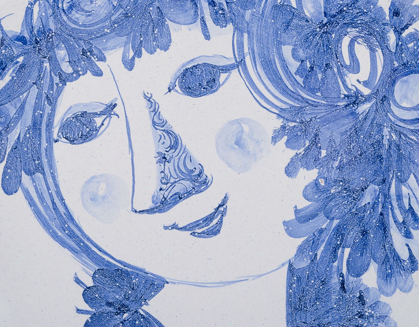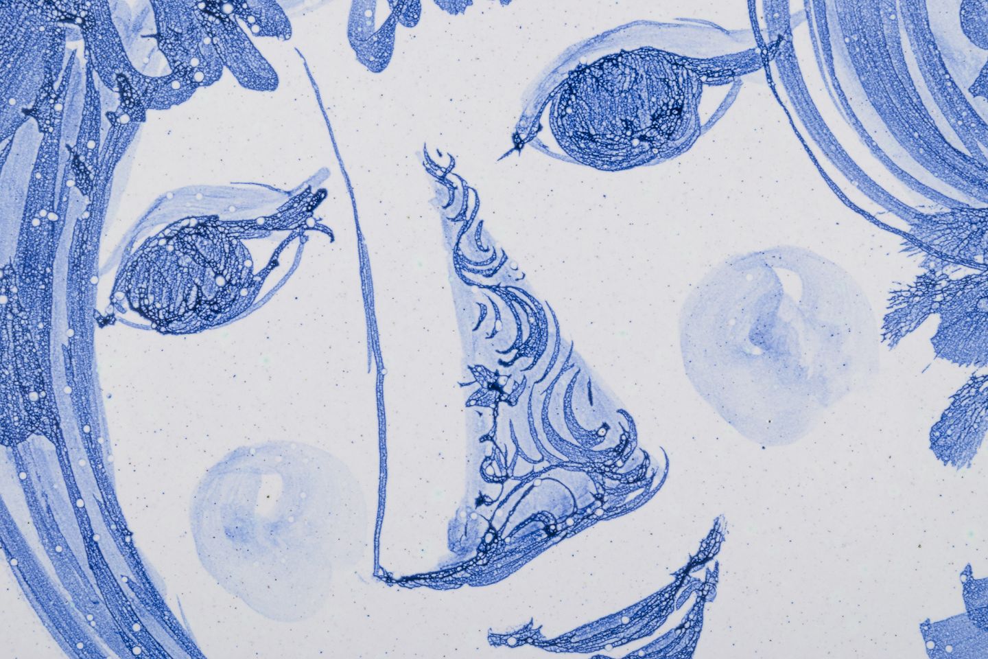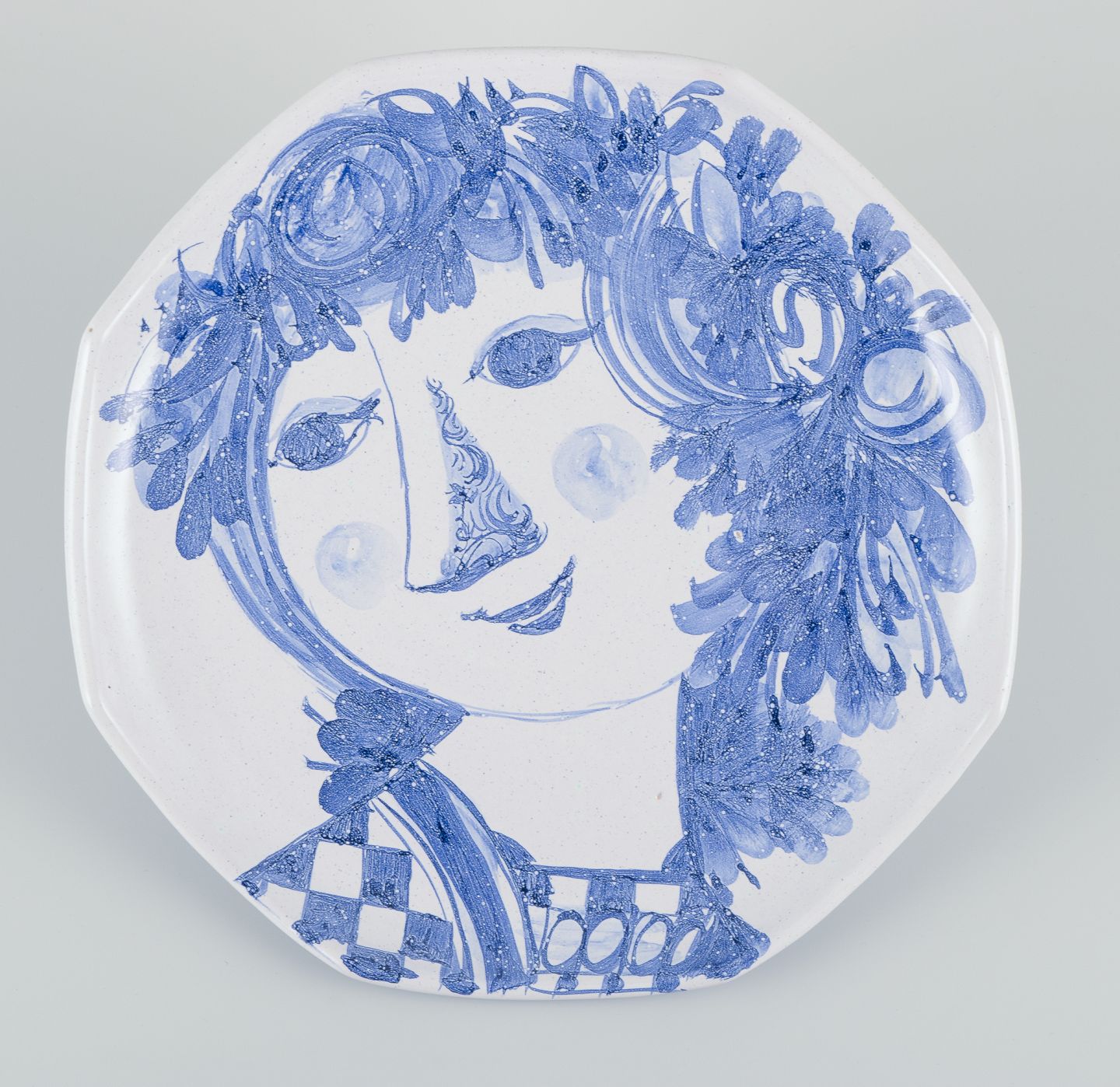 Bjørn Wiinblad for Det Blå Hus. Ottekantet fad/vægplakette i stentøj. Unika.