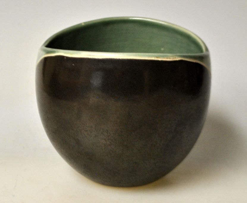 Danish artist (20th century): Vase. Stoneware. Decorated with green and dark glazes. H.: 9 cm. Indistinctly stamped at the bottom.