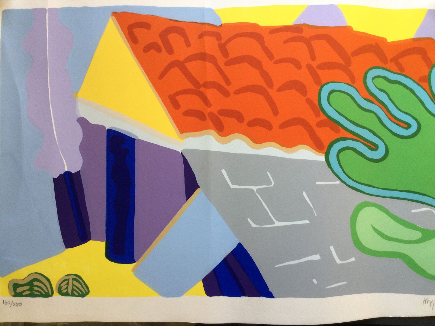 Farvelitografi af Tom Krøjer - Komposition 1997.