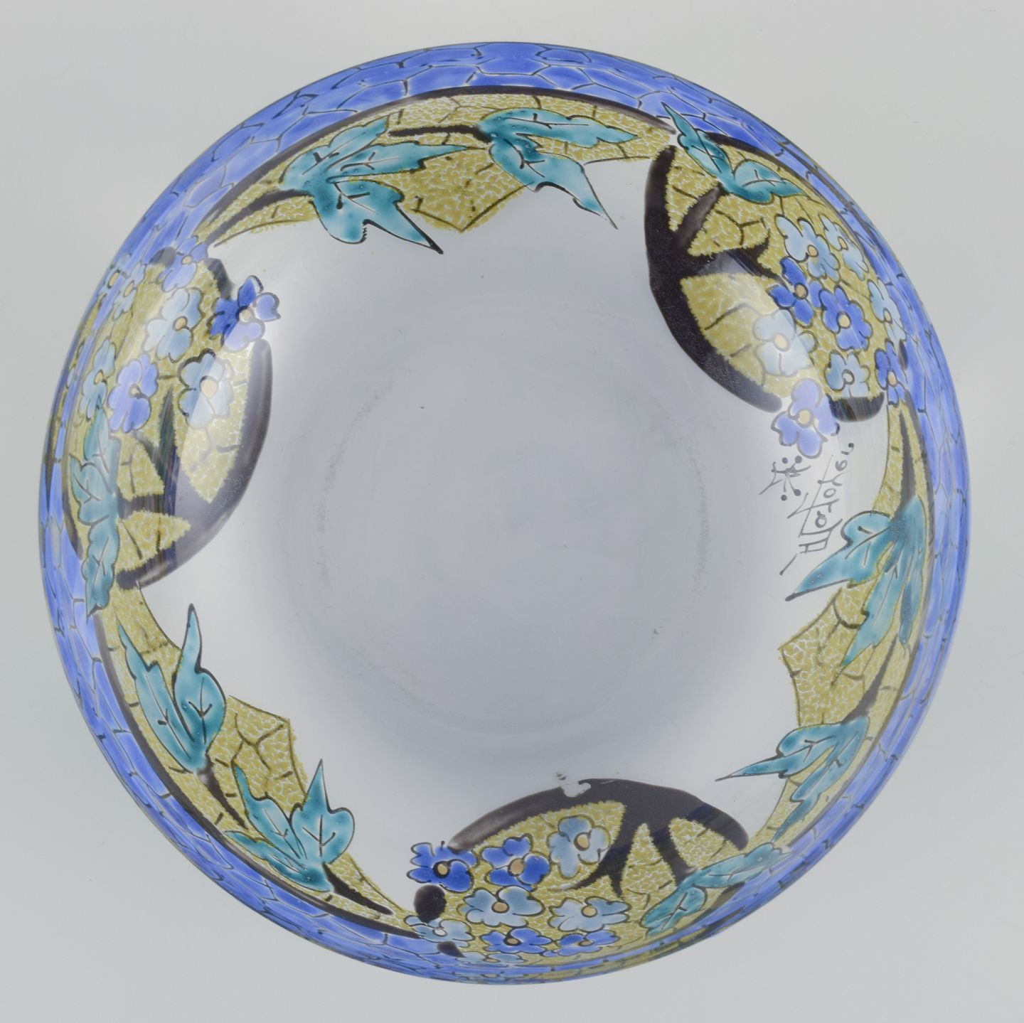 Art Deco skål. Emaljearbejde, motiv af blomster.