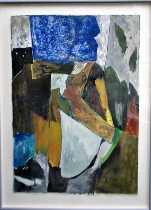 Anderberg, Niklas (1950 - ) Sverige/Danmark: Komposition, 1987. Olie på papir. Signeret. H: 100 cm. B: 70 cm.