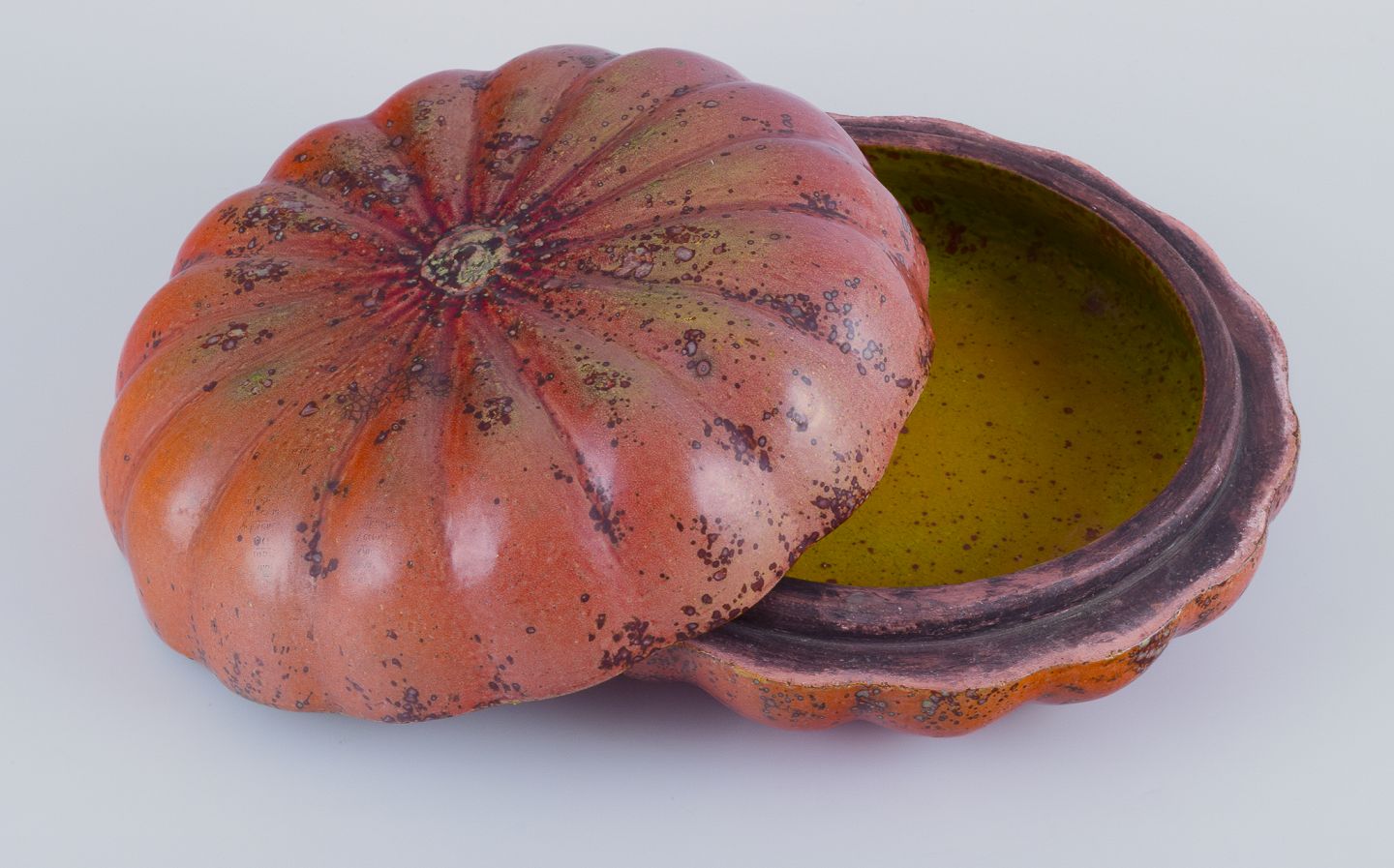 Stor unika græskar skulptur. Stor lågkrukke formet som et græskar.