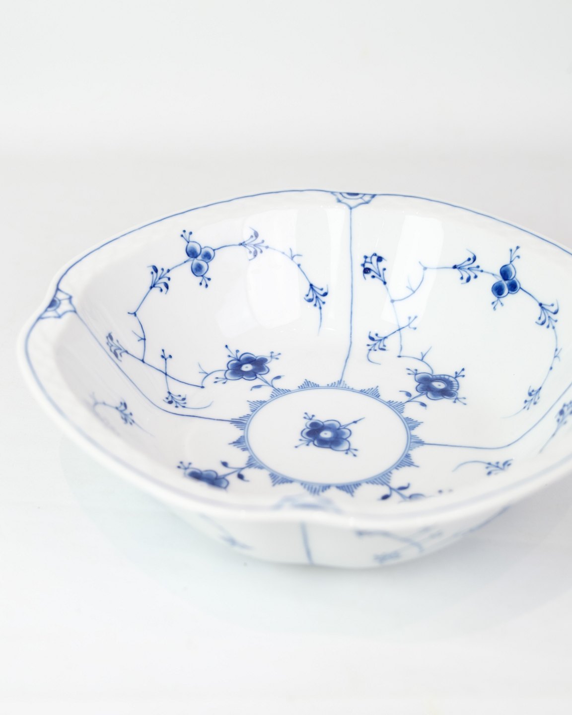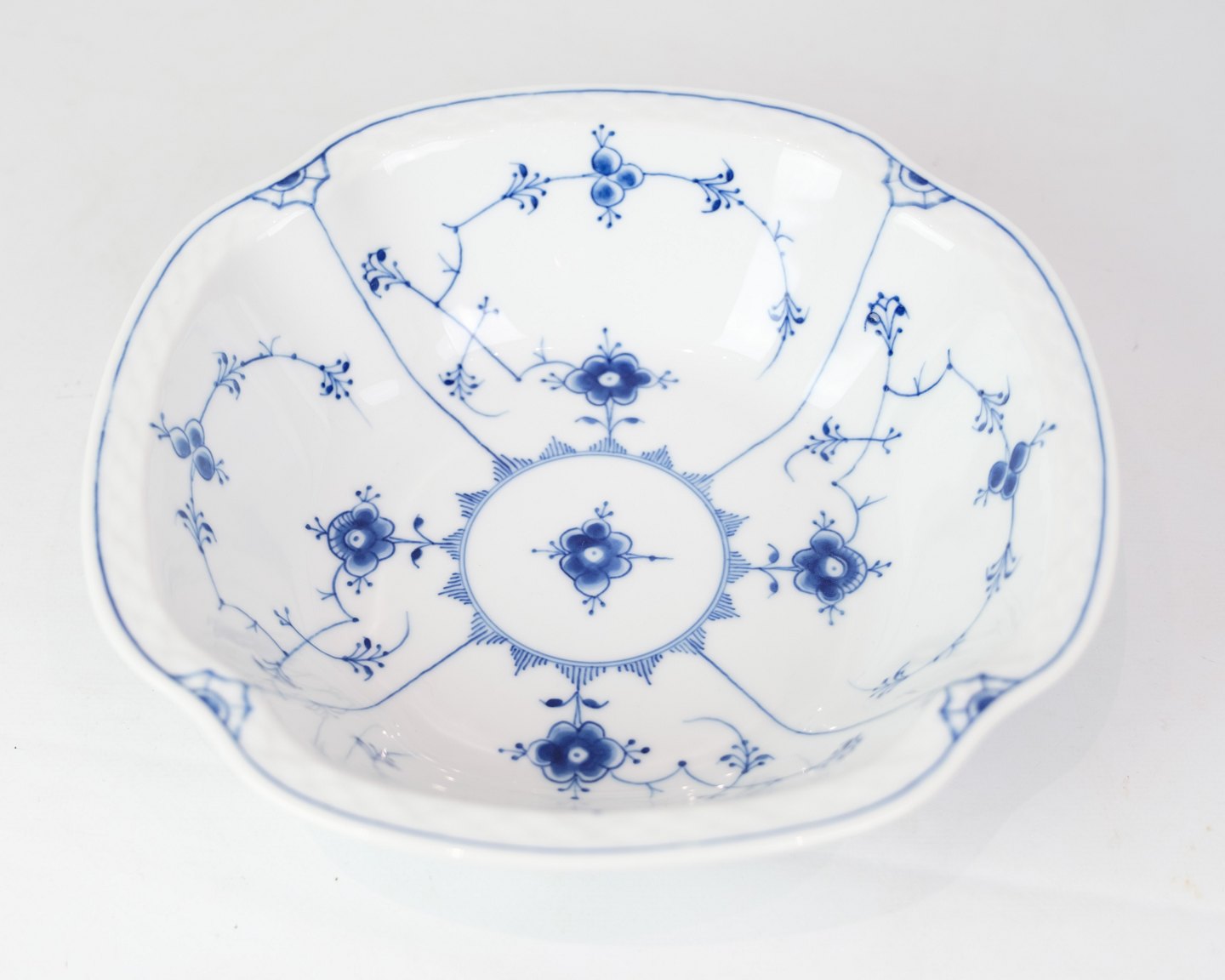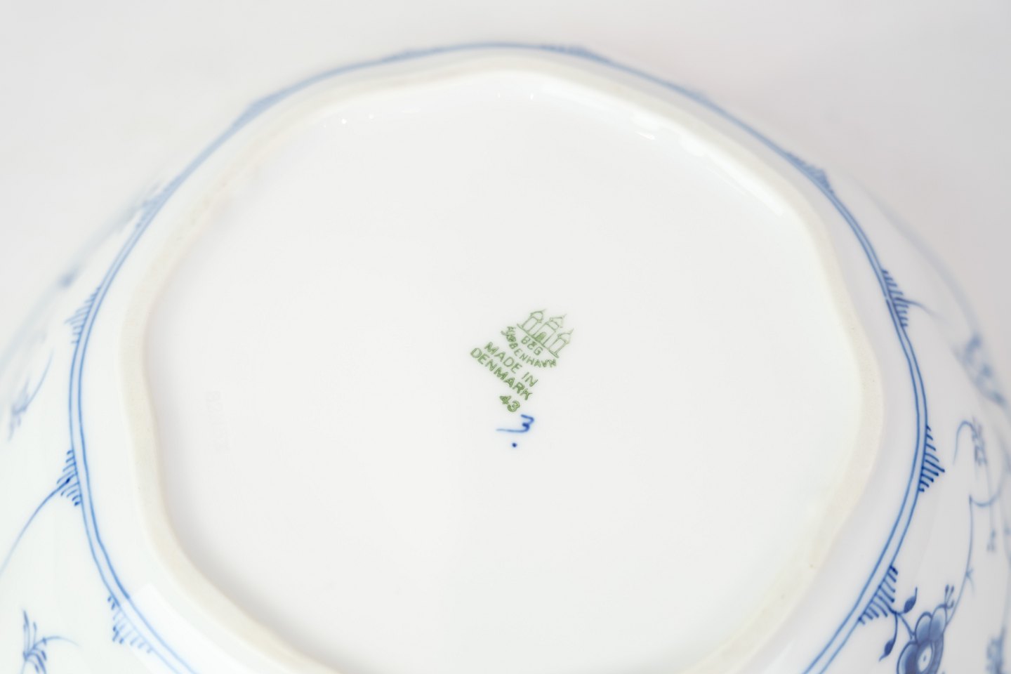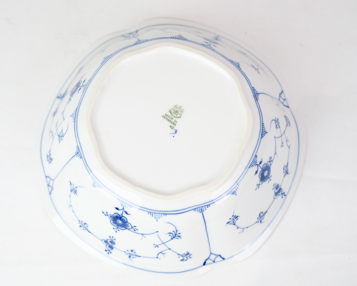 Kartoffelskål nr. 43 fra Bing & Grøndahl. Fremstillet i porcelæn med klassisk blåmalet musselmalet dekoration.