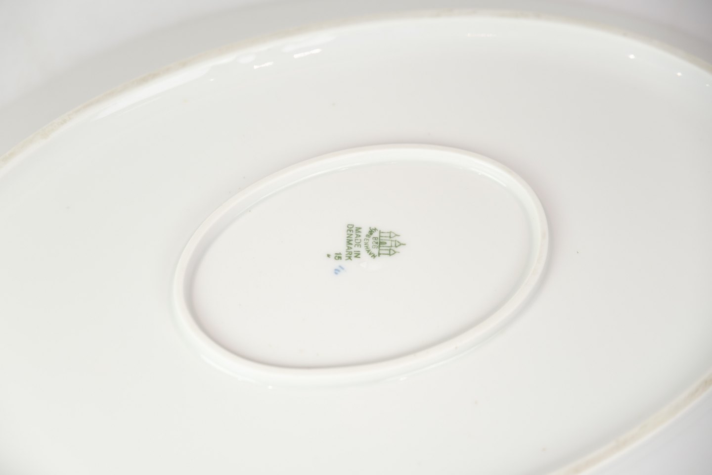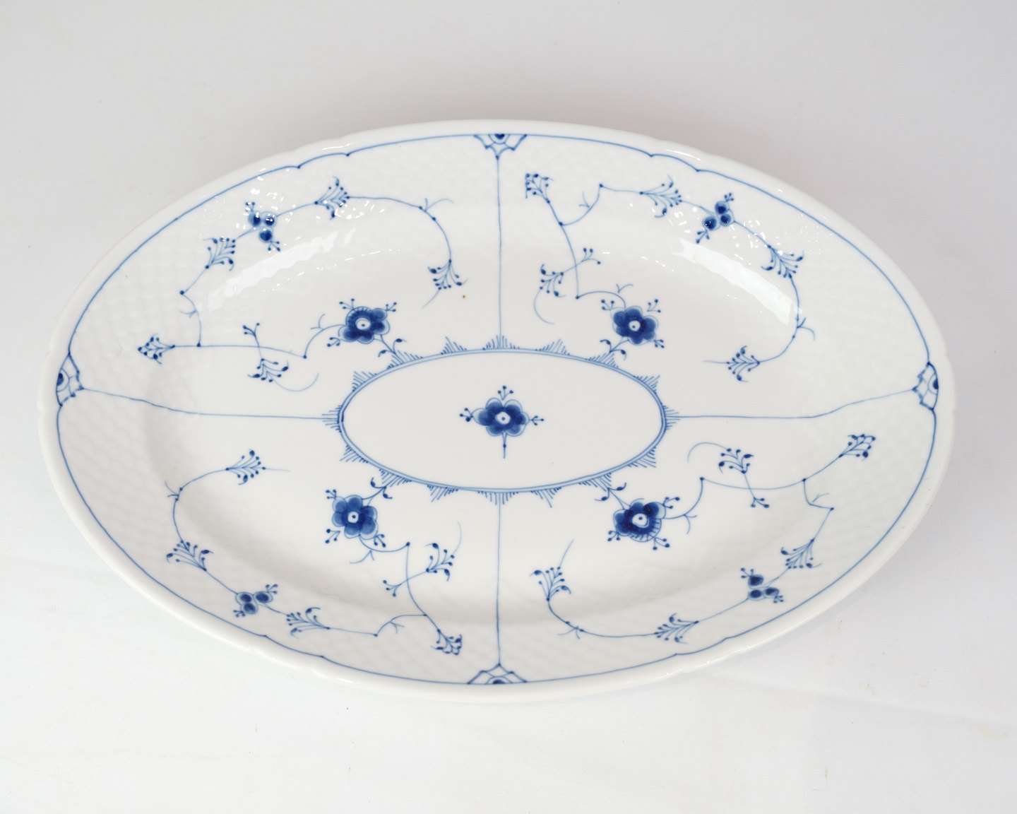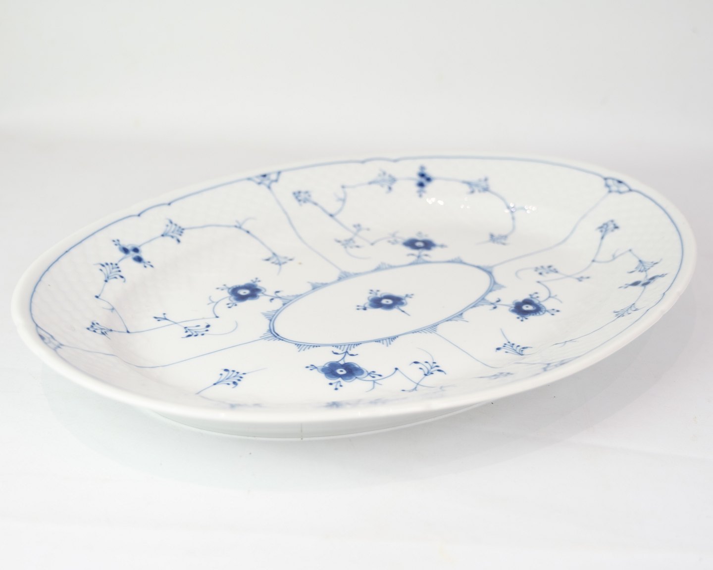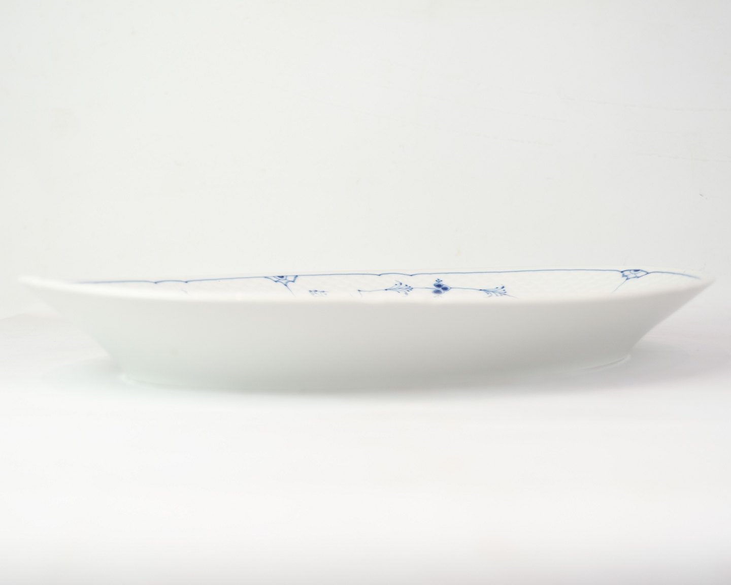 Ovalt fad nr. 15 fra Bing & Grøndahl. Fremstillet i porcelæn med klassisk musselmalet design i håndmalet blå dekoration.