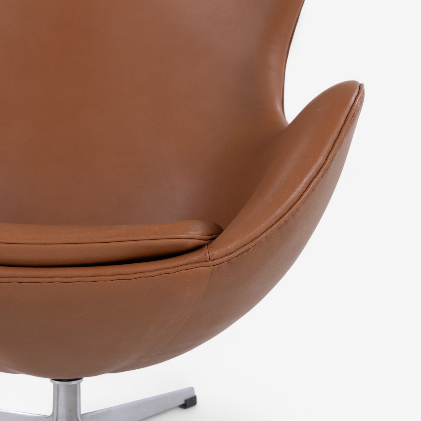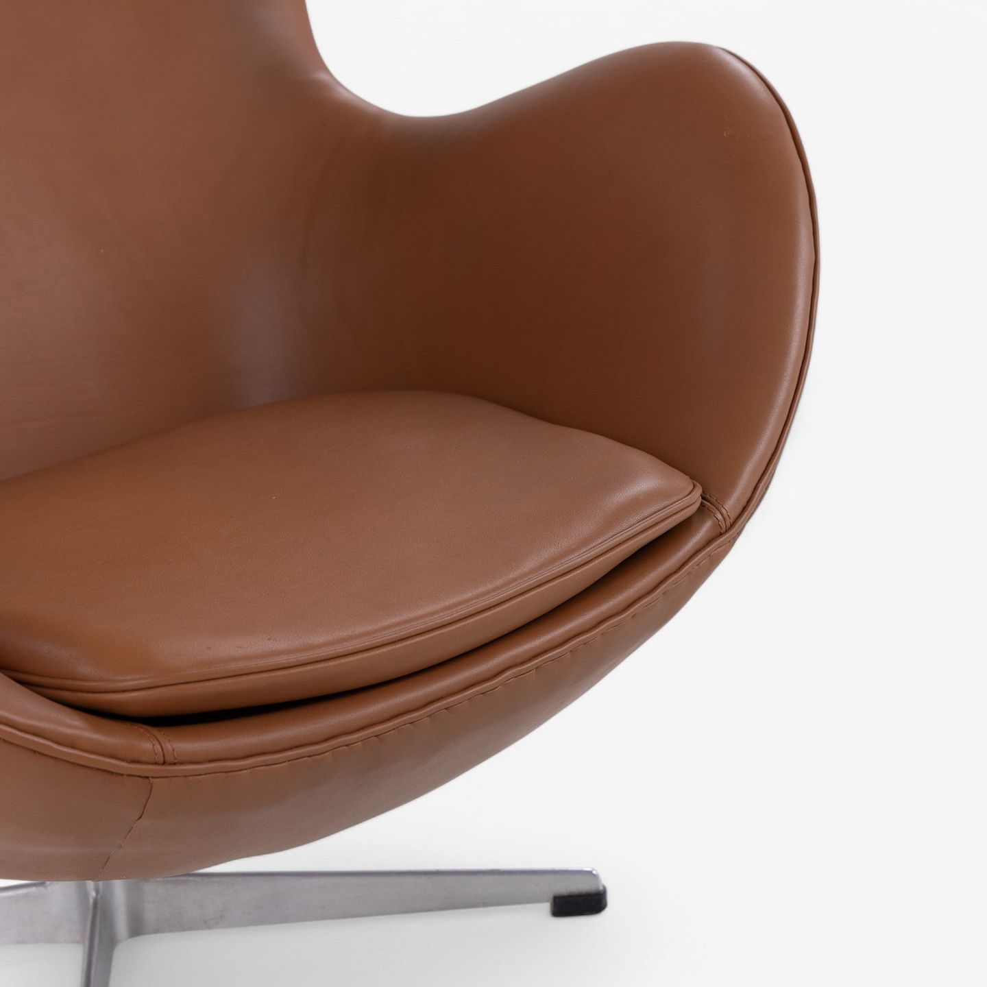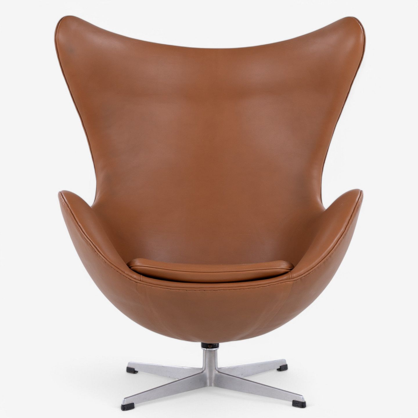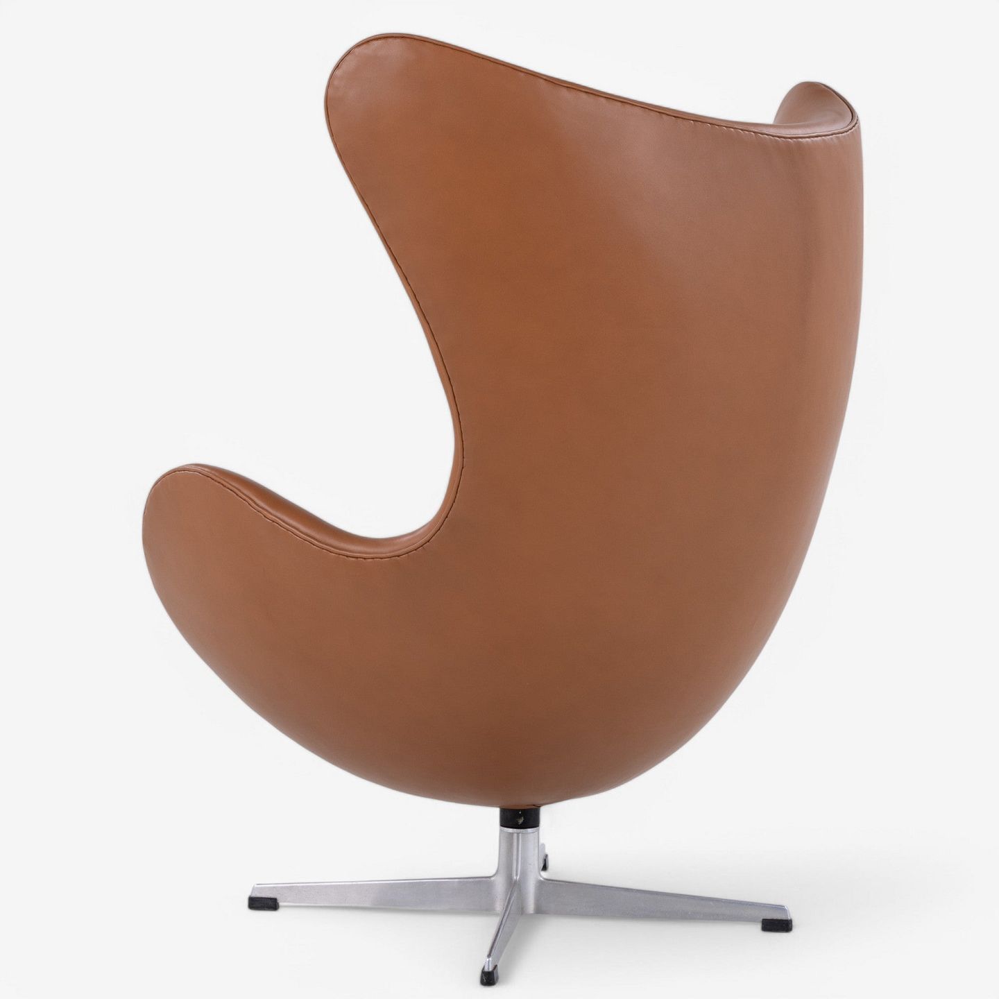 AJ 3316 - Nybetrukket 'Ægget'-lænestol i Elegance-anilinlæder (farve: Walnut) på gammel fod.